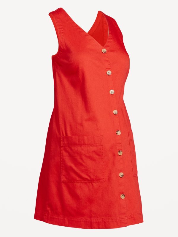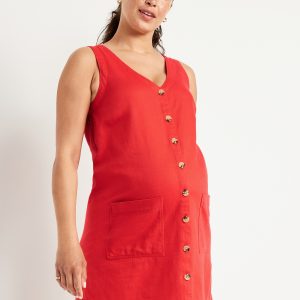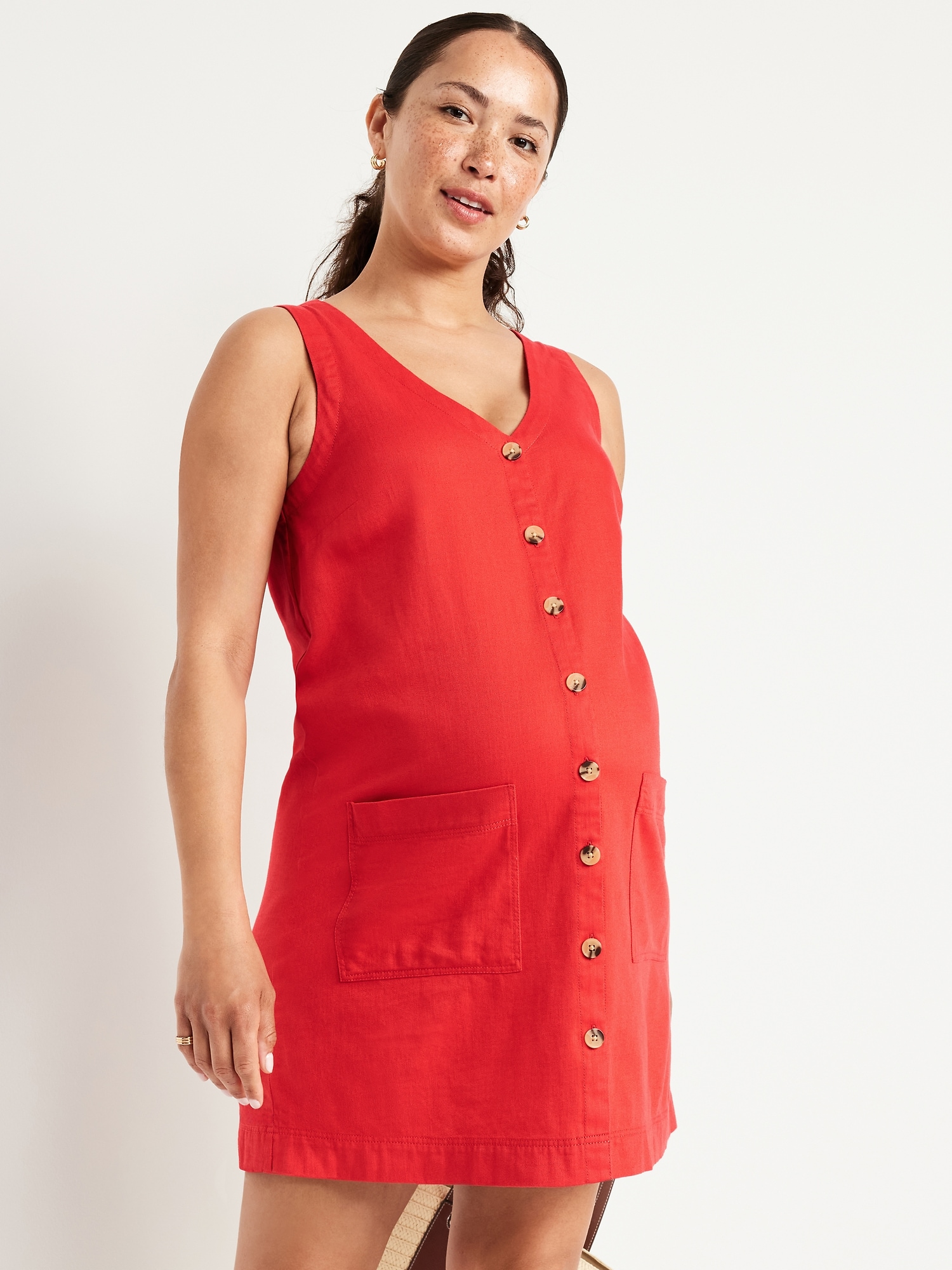 Maternity V-Neck Denim Mini Dress: V-neck, button front, patch pockets at front, #771596