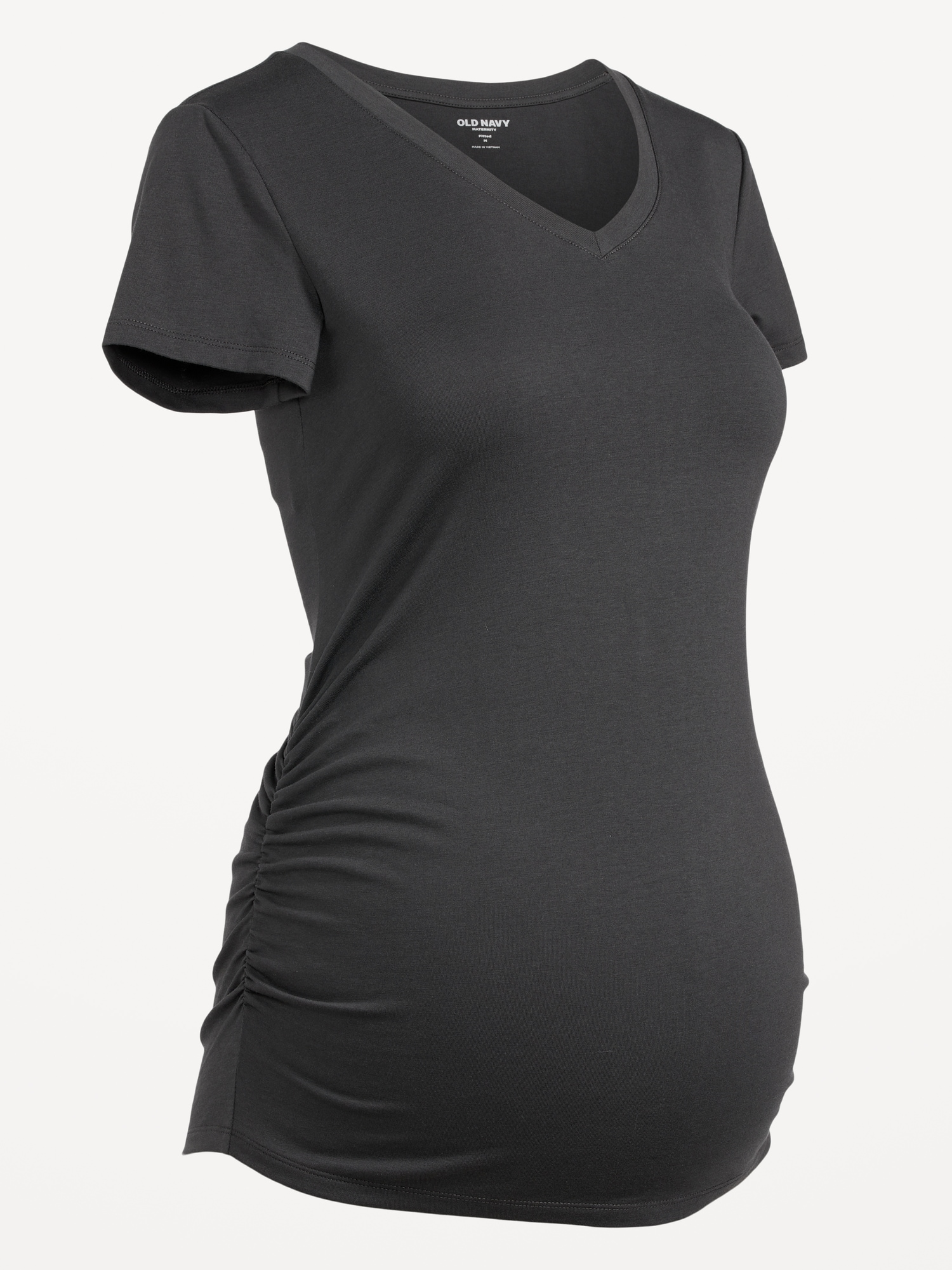 Maternity V-Neck T-Shirt: short sleeves, shirred sides for a flexible fit, #417926