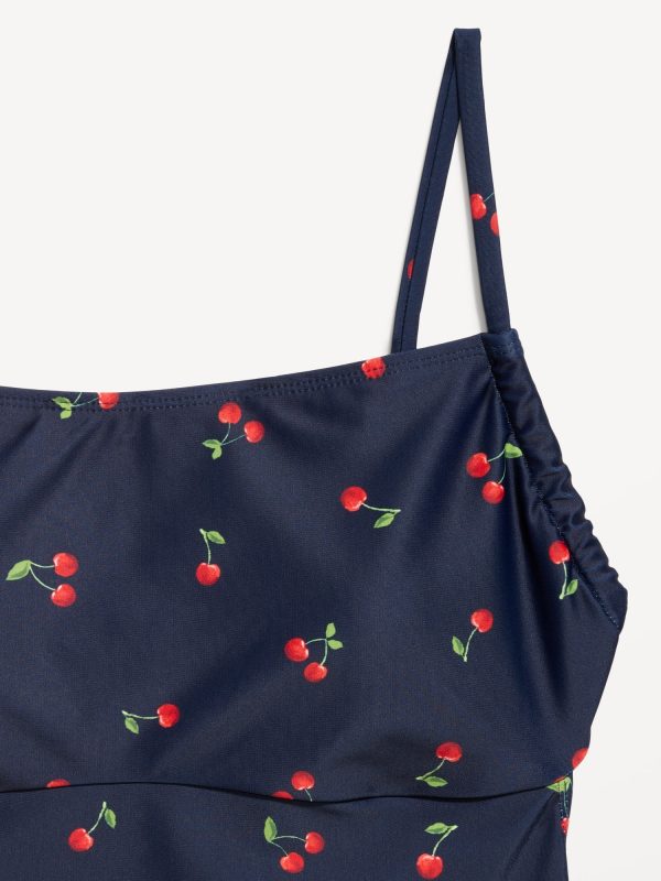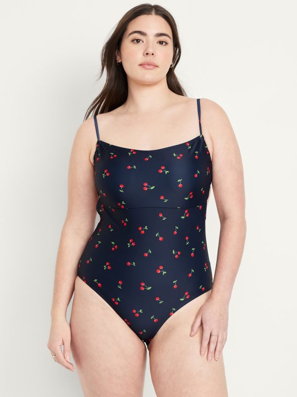 Matte Cutout Back One-Piece Swimsuit: spaghetti straps, ruched bodice, shelf bra, removable pads, cutout back, tie-back closure, elastic leg openings, #660611