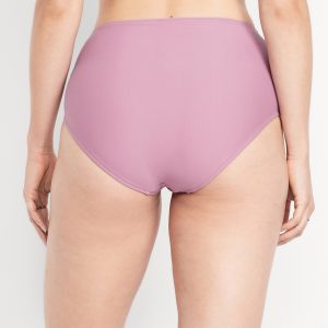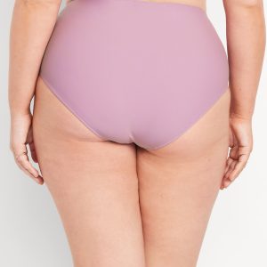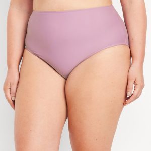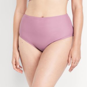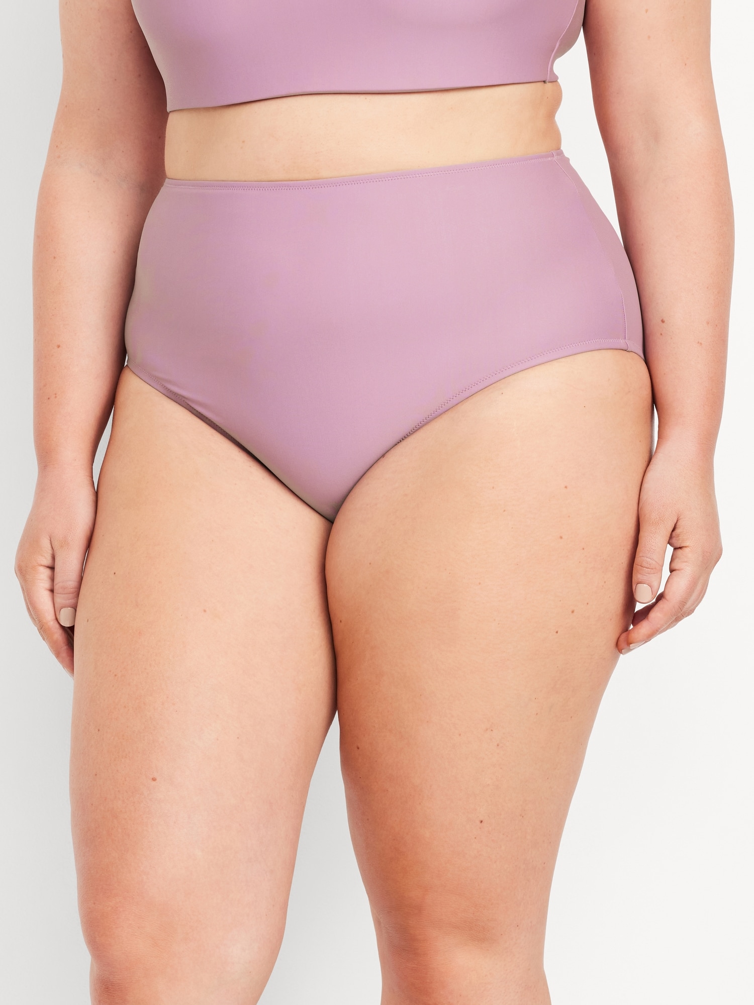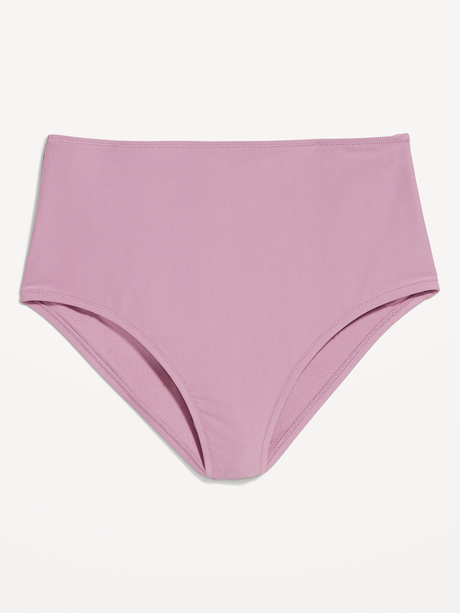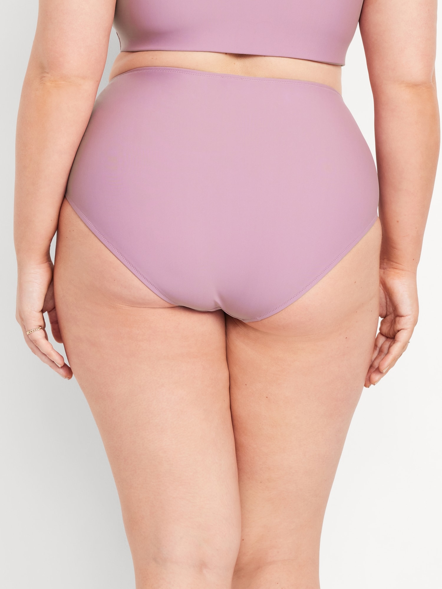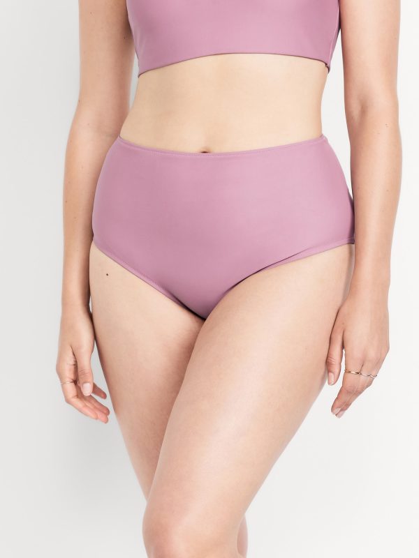 Matte High-Waisted Bikini Swim Bottoms: elasticized waist, elasticized leg openings, prints vary, #660456