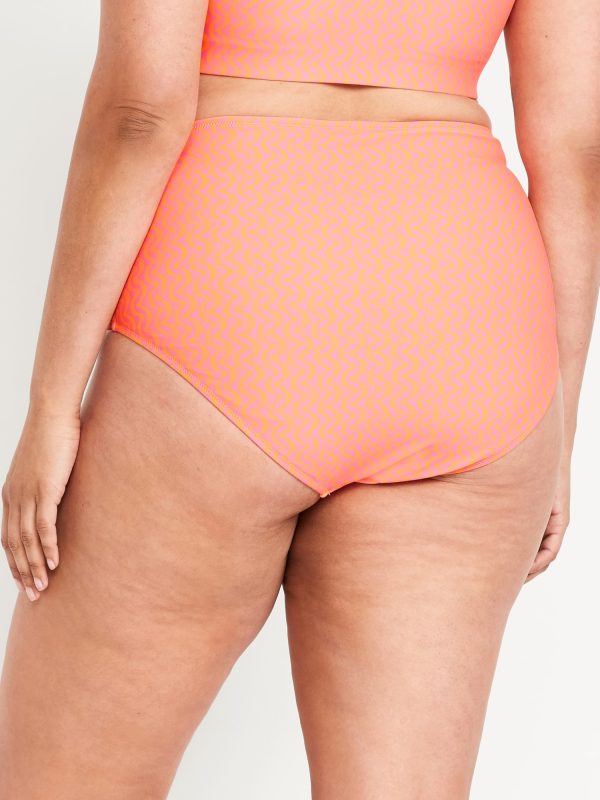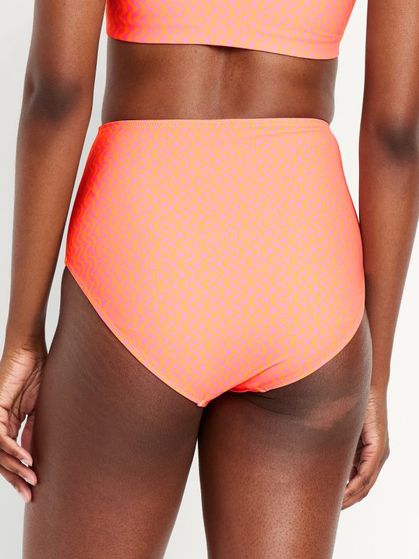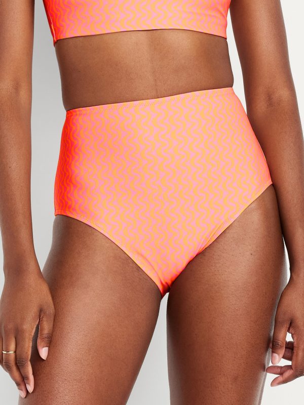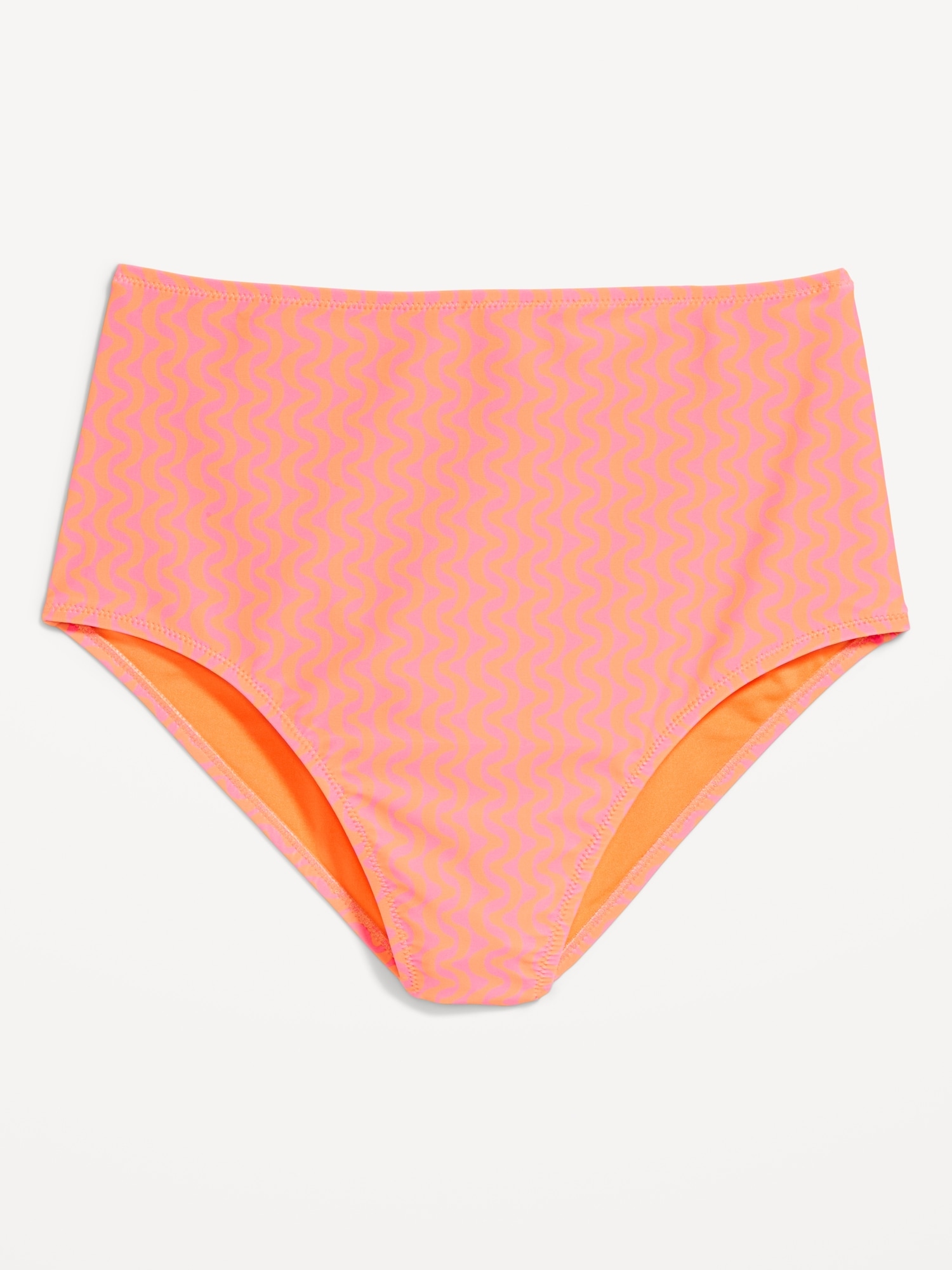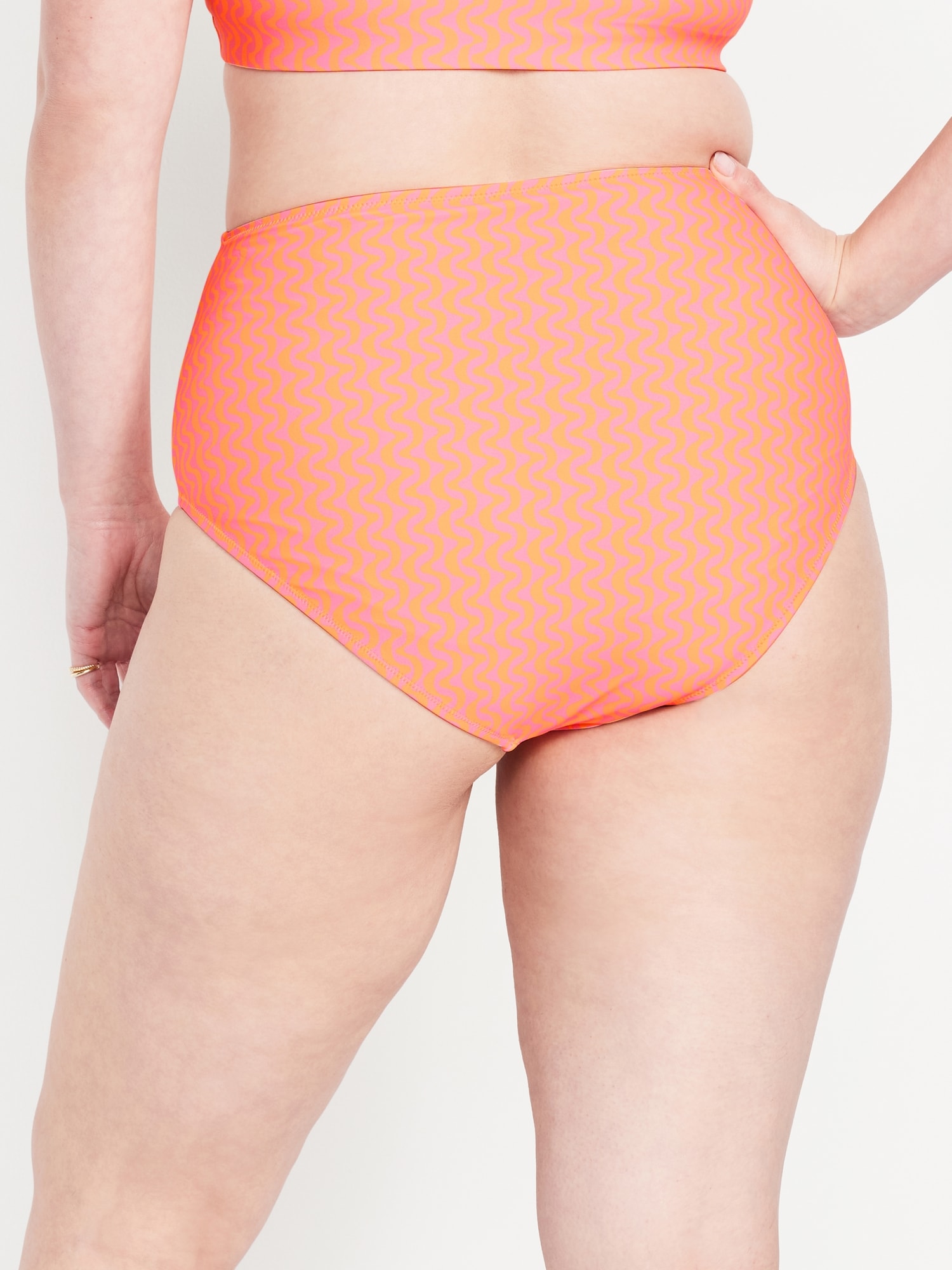 Matte High-Waisted Bikini Swim Bottoms: elasticized waist, elasticized leg openings, prints vary, #660456