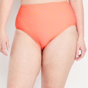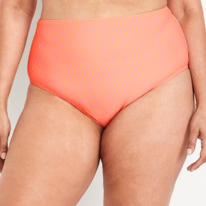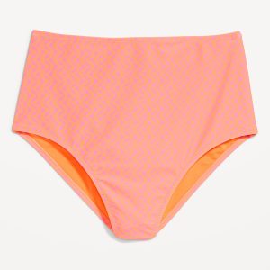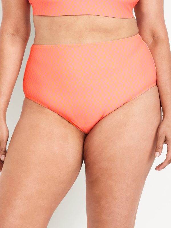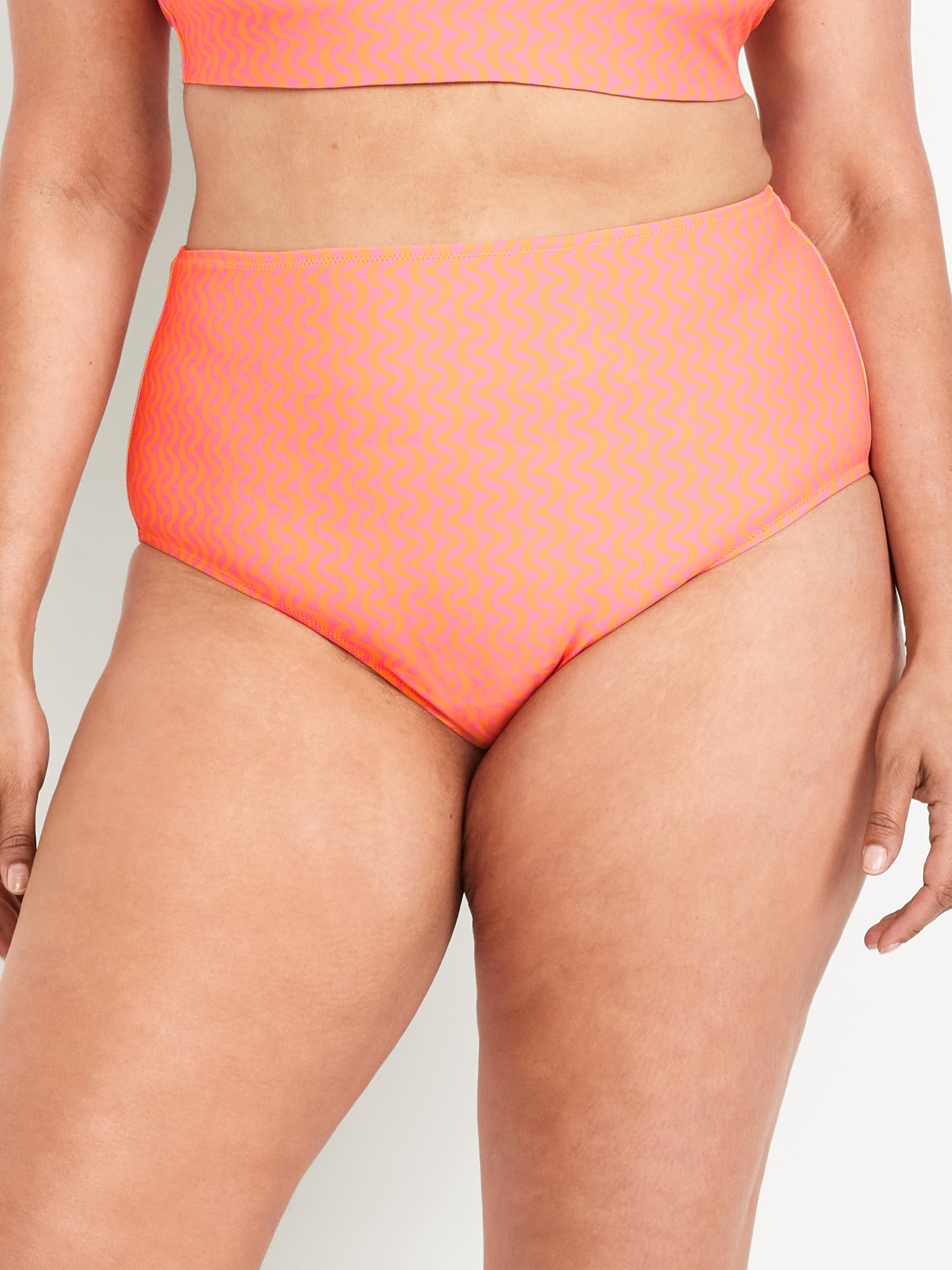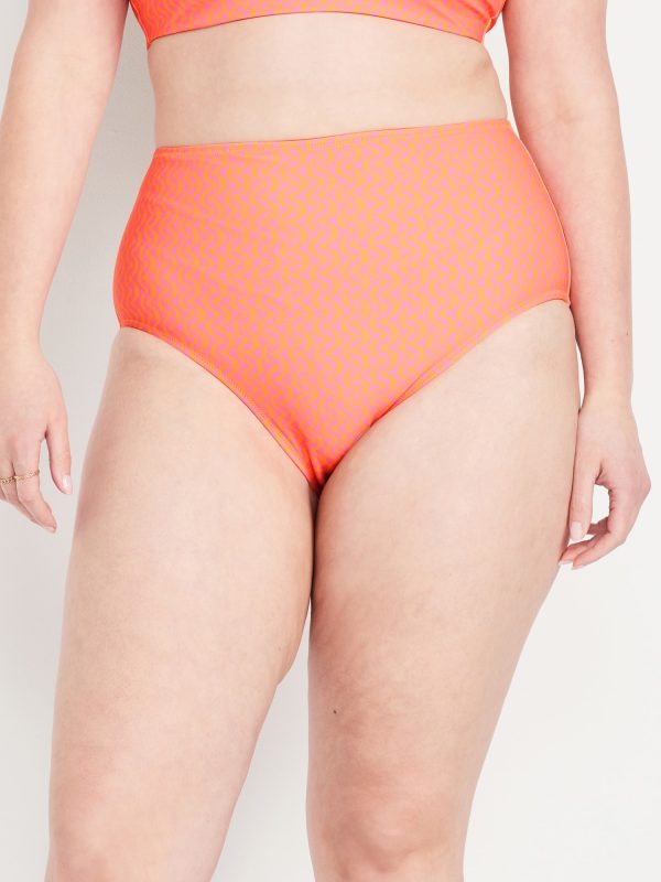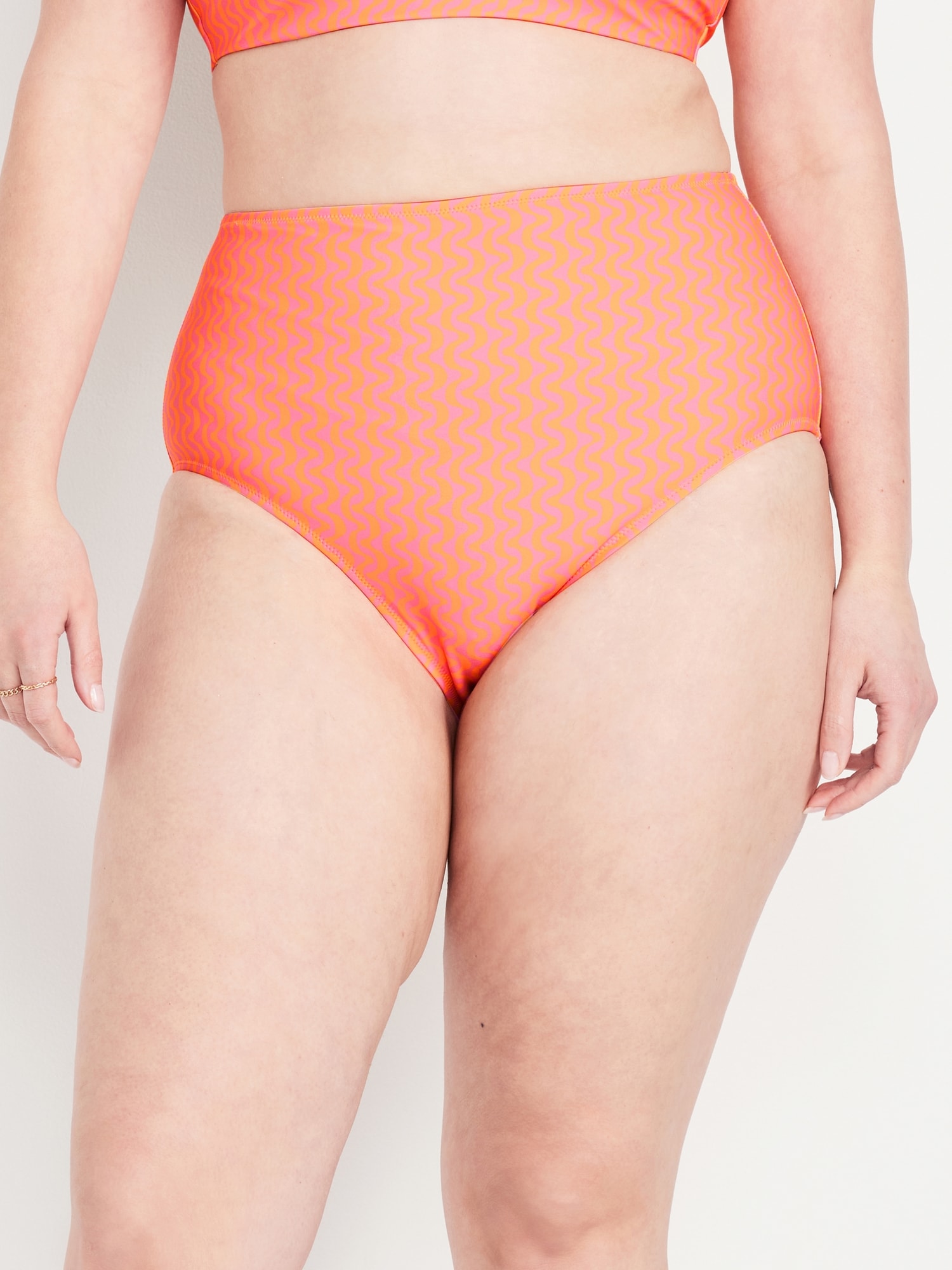 Matte High-Waisted Bikini Swim Bottoms: elasticized waist, elasticized leg openings, prints vary, #660456