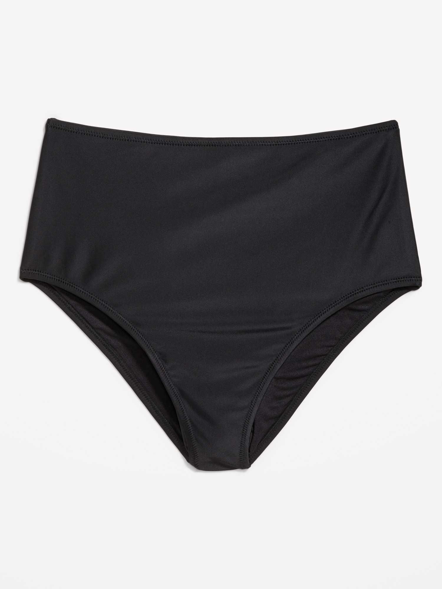 Matte High-Waisted Bikini Swim Bottoms: elasticized waist, elasticized leg openings, prints vary, #660456
