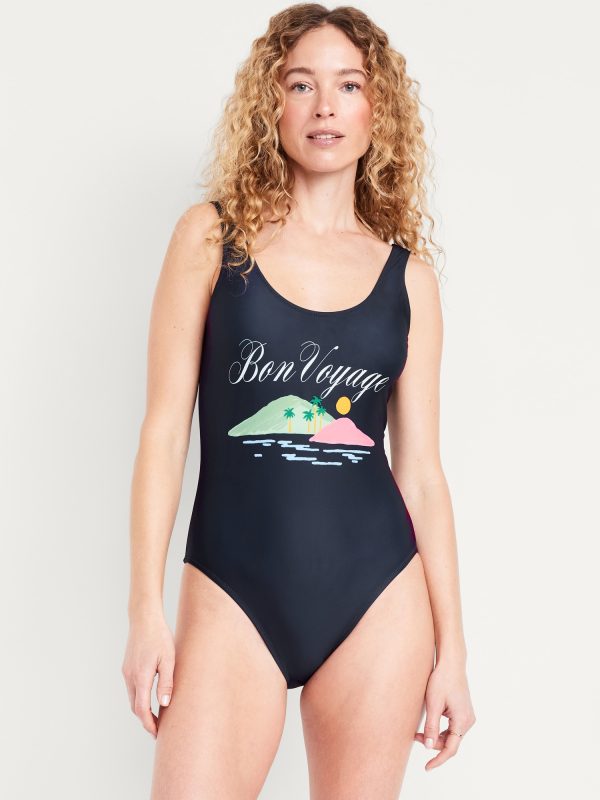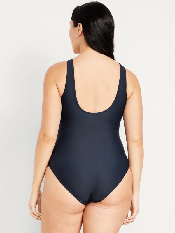 Matte One-Piece Swimsuit: scoop neck, wide straps, low scoop back, removable pads, elastic leg openings, #604387