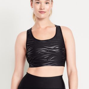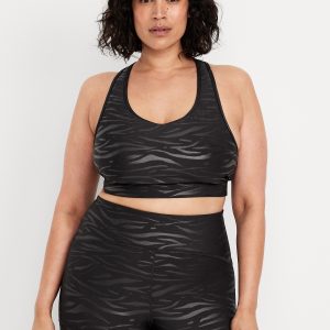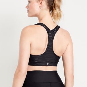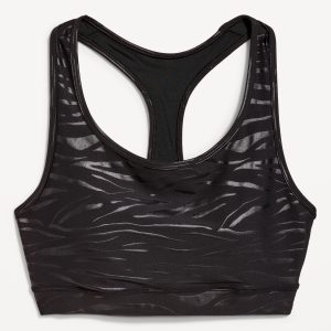 Medium Support PowerSoft Racerback Sports Bra: Featuring PowerSoft. Light compression meets a peachy-smooth, sweat-wicking fabric.stabilizing straps, racerback, front mesh lining with shaped cups, removable pads, banded-elastic hem, go-dry wicks moisture, #569574