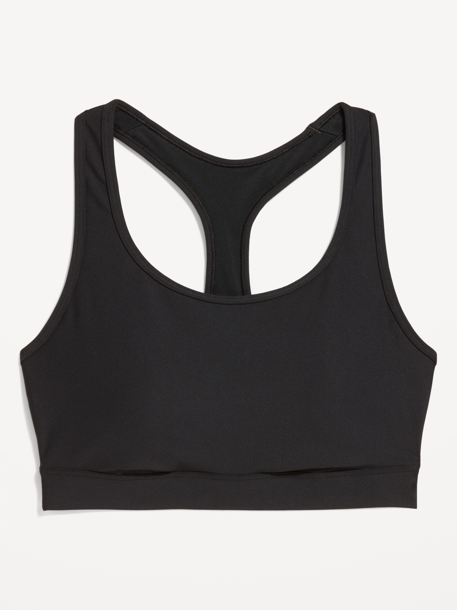 Medium Support PowerSoft Racerback Sports Bra: Featuring PowerSoft. Light compression meets a peachy-smooth, sweat-wicking fabric.stabilizing straps, racerback, front mesh lining with shaped cups, removable pads, banded-elastic hem, go-dry wicks moisture, #569574