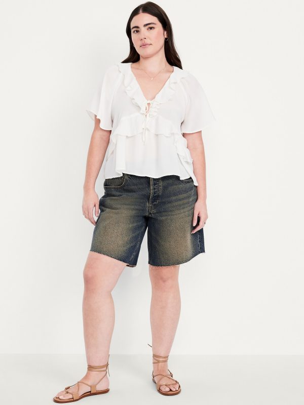 Mid-Rise Baggy Cut-Off Jean Bermuda Shorts — 9-inch inseam