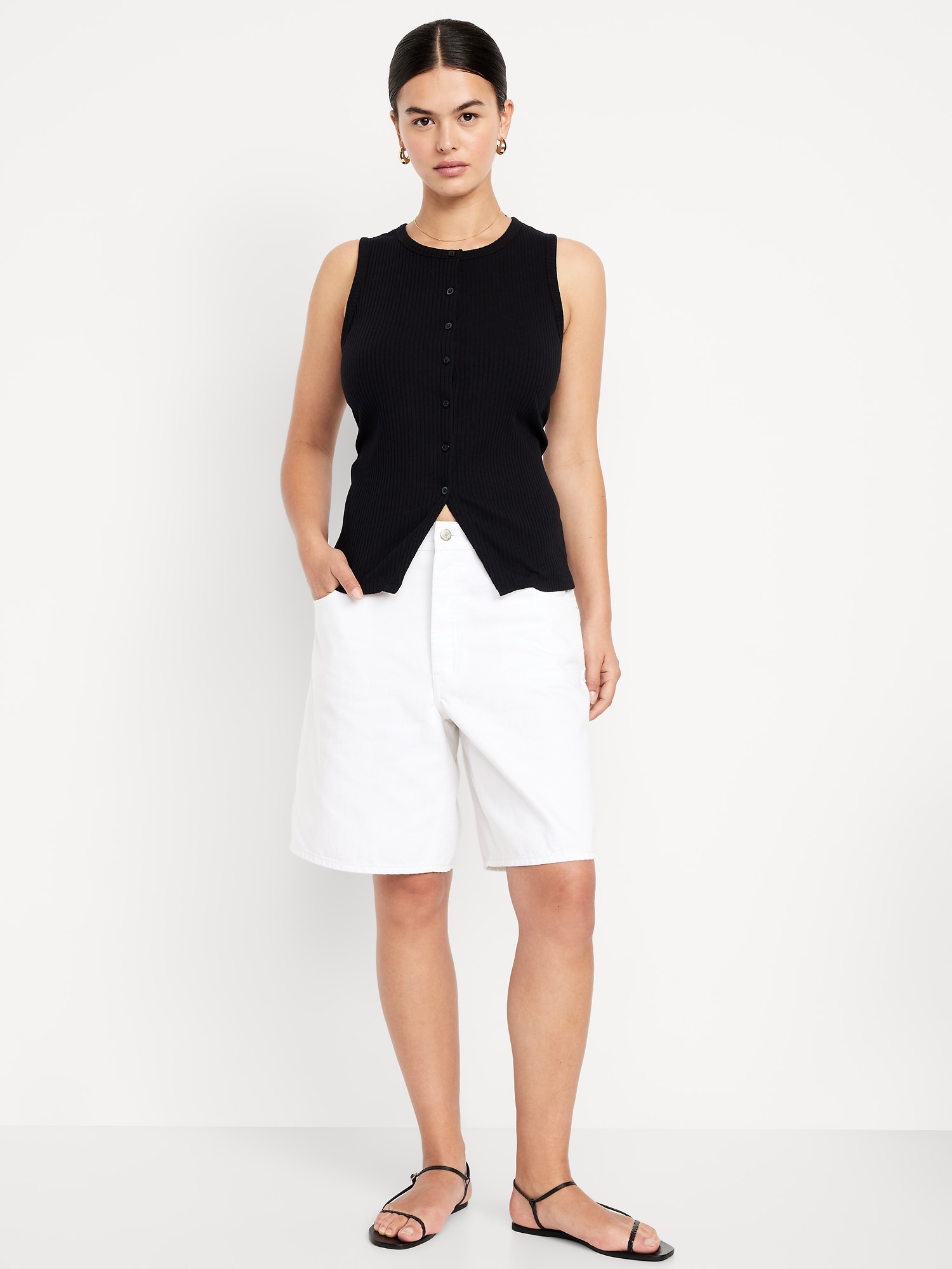 Mid-Rise Baggy Jean Bermuda Shorts — 9-inch inseam