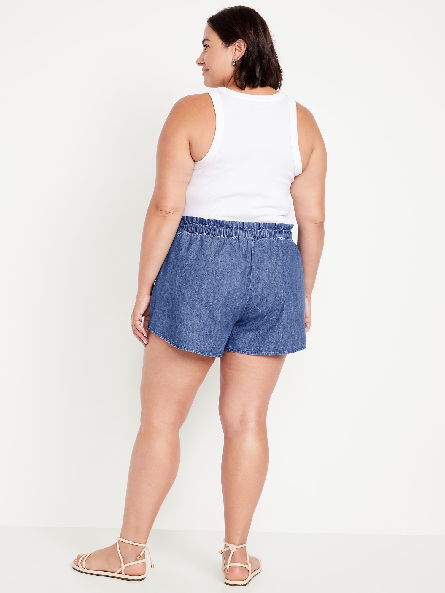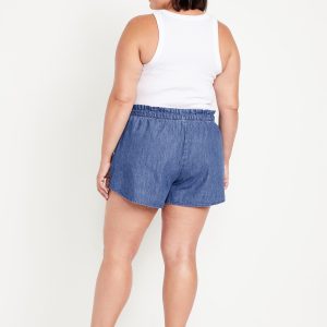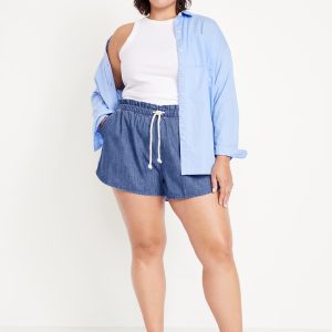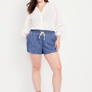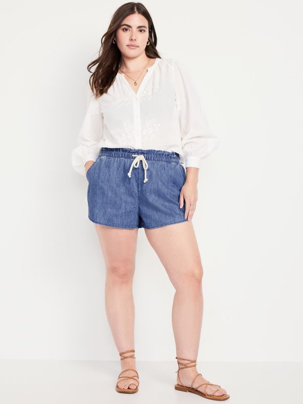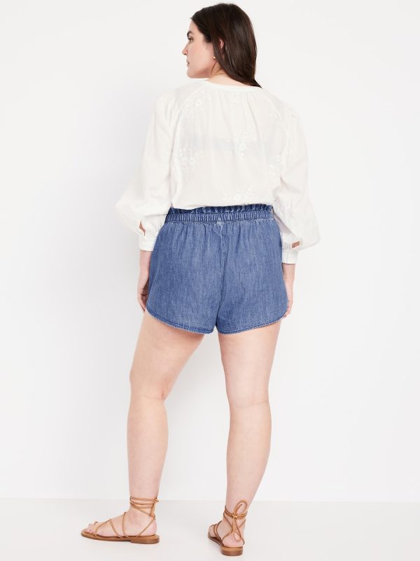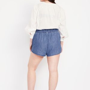 Mid-Rise Jean Volume Shorts: mid-rise elastic-drawstring waist, diagonal hip pockets, #844572