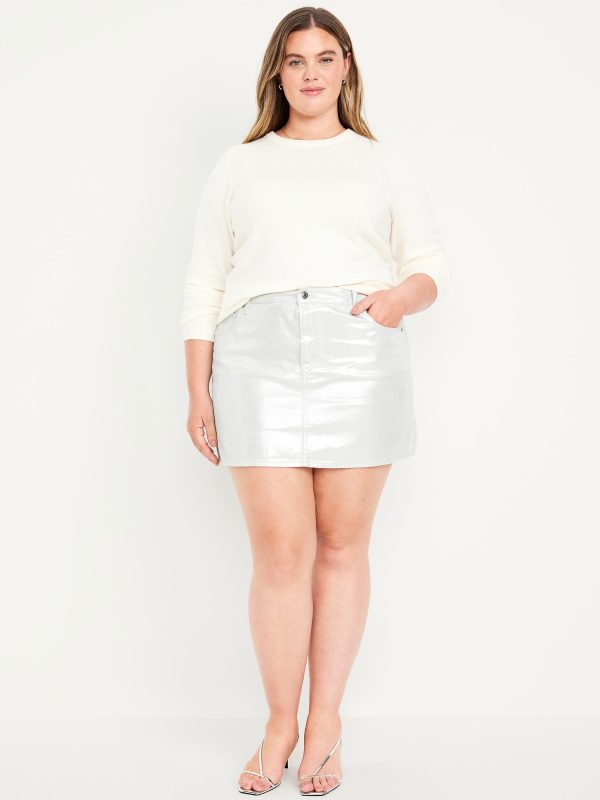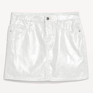 Mid-Rise OG Shine Mini Skirt: button front, belt loops, zip fly, front scoop pockets, back patch pockets, #582165