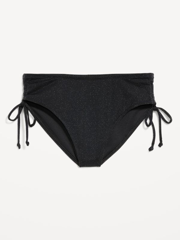 Mid-Rise Side-Tie Shine Bikini Swim Bottoms
