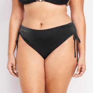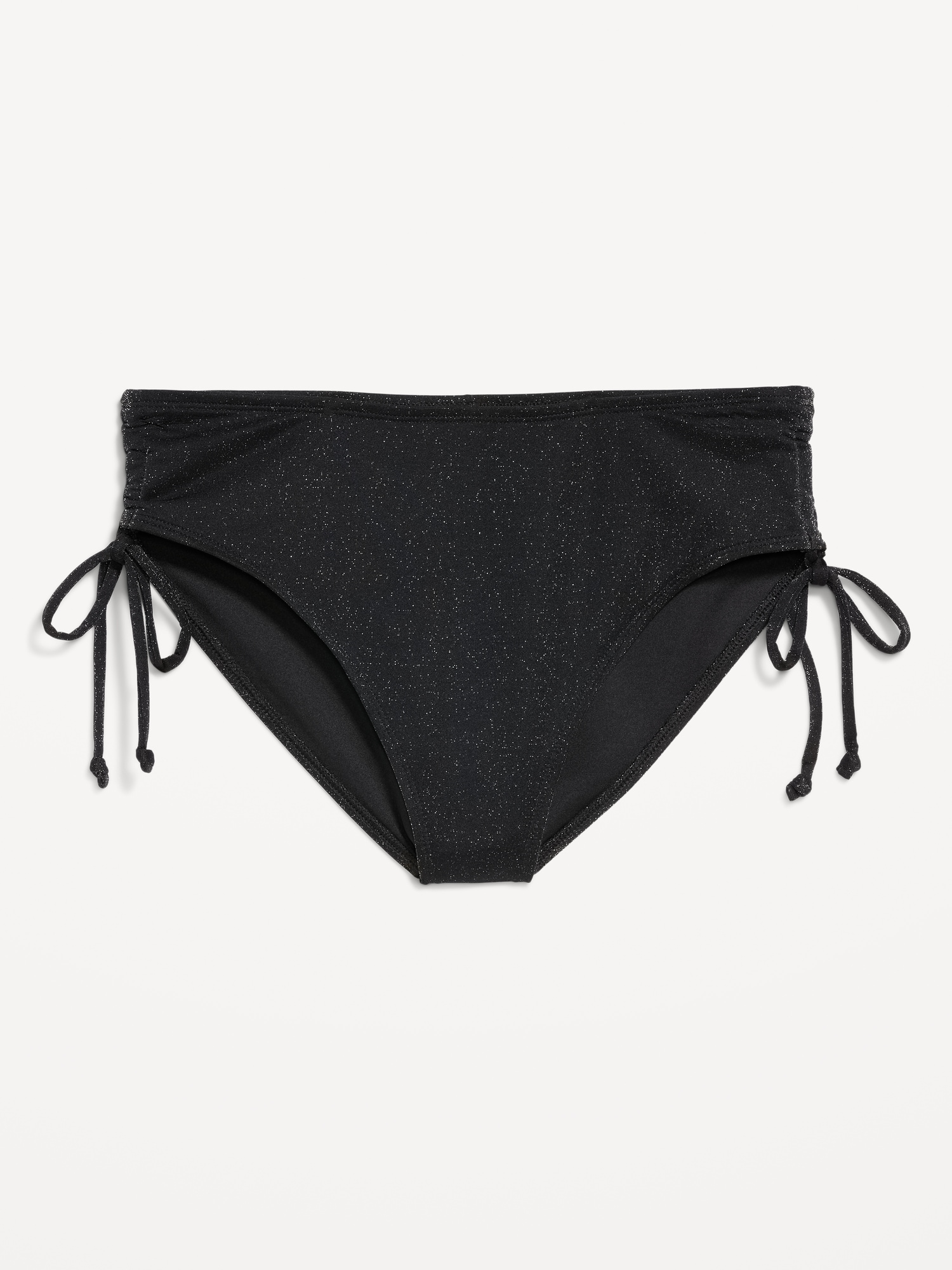 Mid-Rise Side-Tie Shine Bikini Swim Bottoms: side ties with ruched detail, elastic leg openings, why blend in when you can shine?, #660460