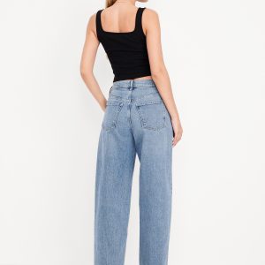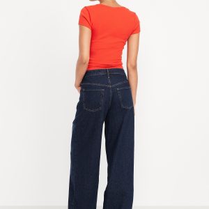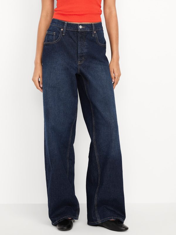 Mid-Rise Slouchy Wide-Leg Jeans: Low-slung and laid back with a long silhouette.mid-rise waist that’s low slung on the hips, hidden button fly, wide leg puddles at hem, #805772