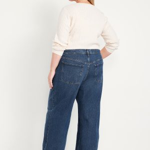 Mid-Rise Slouchy Wide-Leg Jeans: Low-slung and laid back with a long silhouette.mid-rise waist that’s low slung on the hips, hidden button fly, wide leg puddles at hem, #805772