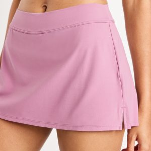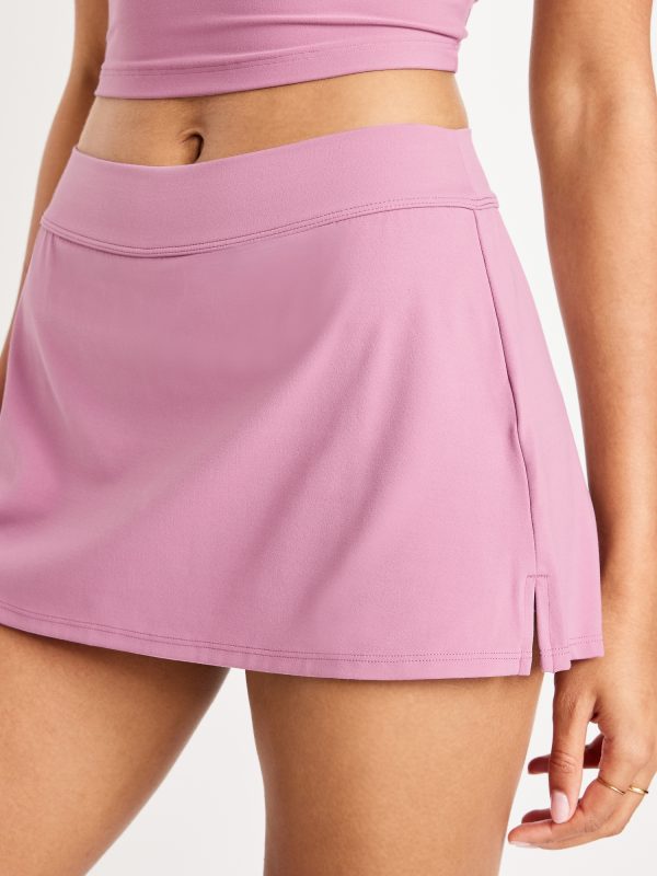 Mid-Rise StudioSmooth Mini Skort: Featuring StudioSmooth. Buttery soft and breathable, with a barely-there feel.mid-rise waistband, built-in biker shorts, go-dry wicks moisture, breathable, vented sides, #824389