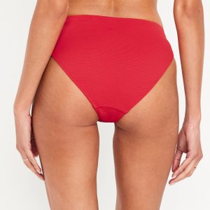 Mid-Rise Textured Bikini Swim Bottoms