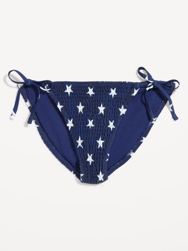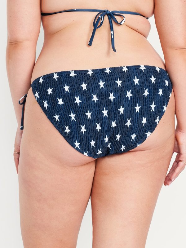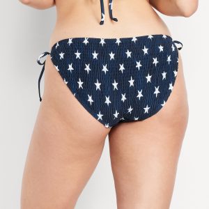 Mid-Rise Textured String Bikini Swim Bottoms: side ties, elastic waist, elastic leg openings, #864987