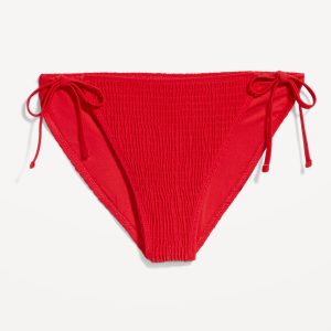 Mid-Rise Textured String Bikini Swim Bottoms: side ties, elastic waist, elastic leg openings, #864987