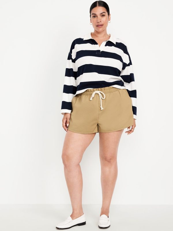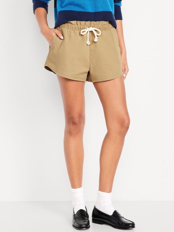 Mid-Rise Twill Volume Shorts: mid-rise elastic-drawstring waist, diagonal hip pockets, #844572