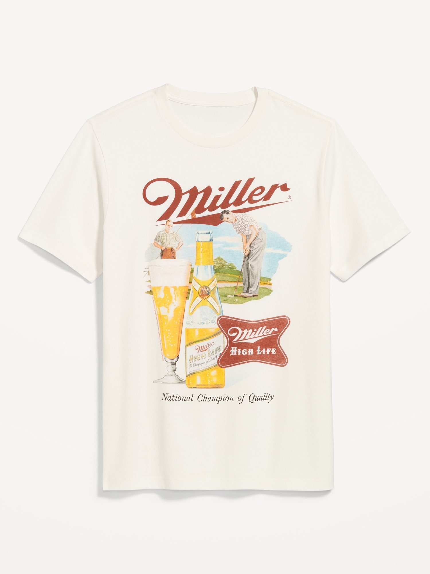 Miller High Life© T-Shirt: rib-knit crew neck, short sleeves, licensed beer graphic, ©2025 Miller Brewing Co., Milwaukee, WI ⢠BEER, #751689