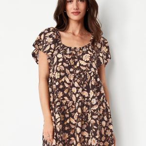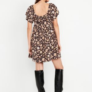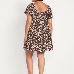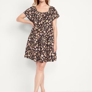 Mini Floral Swing Dress: square elastic neckline, flutter sleeves, tiered seams, shirred detail, #809629
