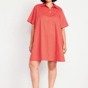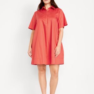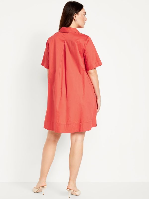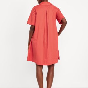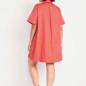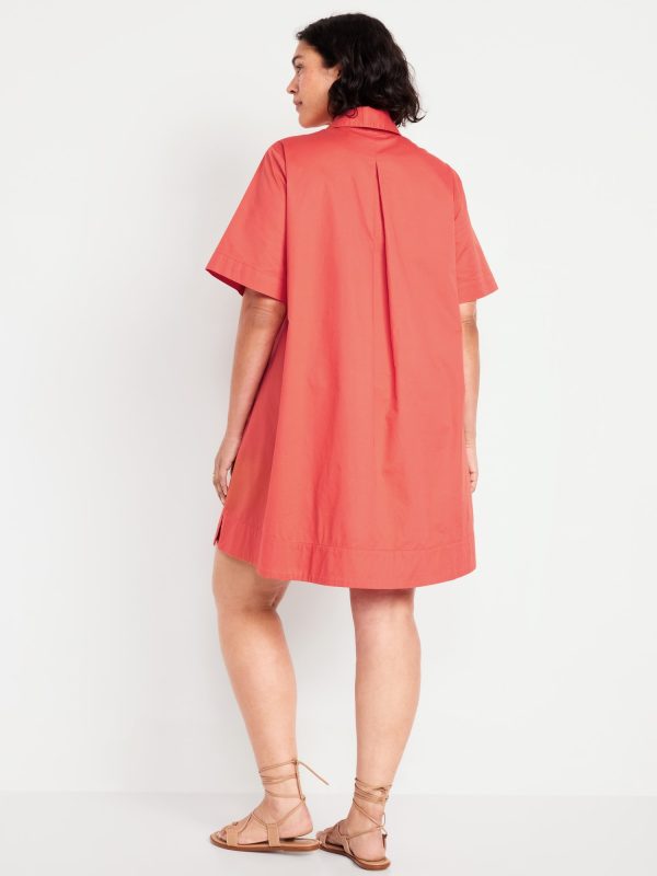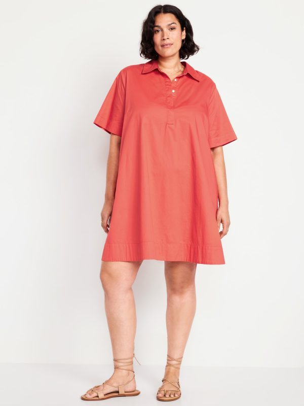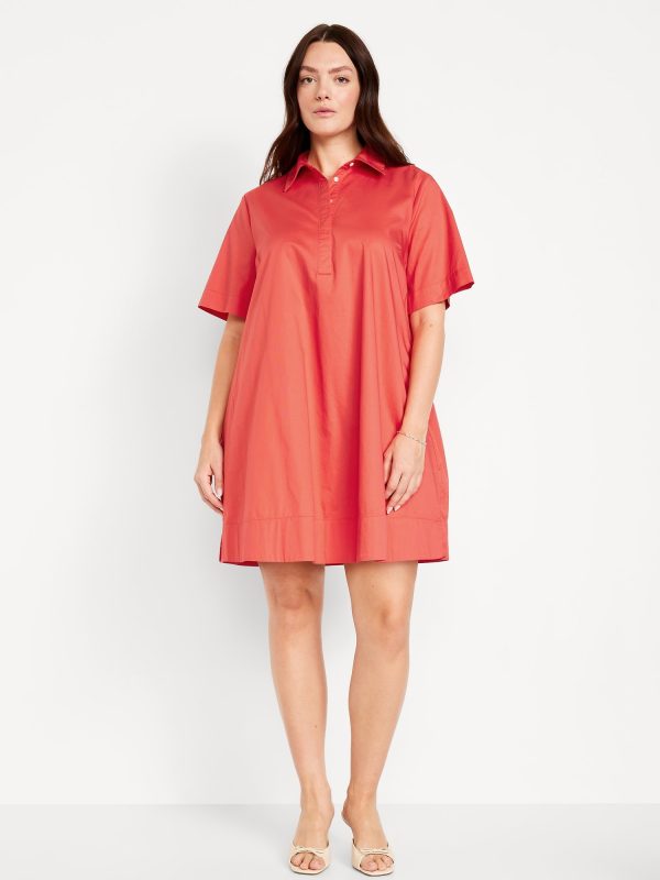 Mini Swing Shirt Dress: spread collar, elbow-length sleeves, covered button placket, vertical striped print, vented sides, #705705
