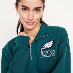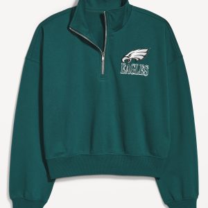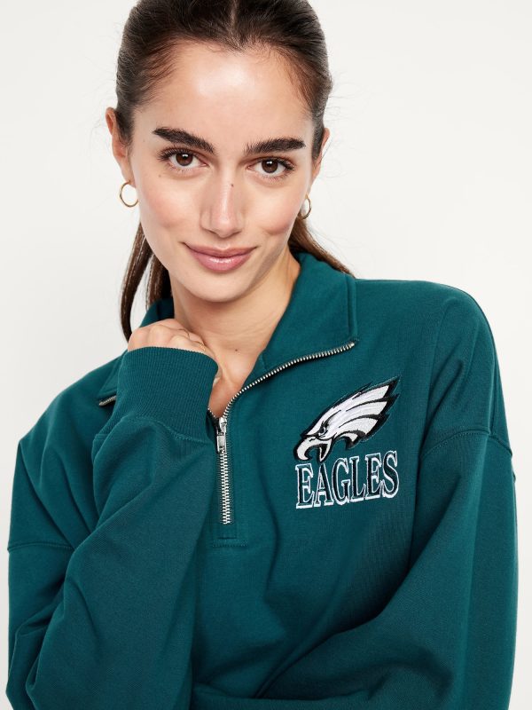 NFL™ Philadelphia Eagles Half-Zip Sweatshirt: mock neck, drop-shoulder sleeves, half-zip front, embroidered licensed graphic, pullover style, © 2025 NFL Enterprises LLC. NFL and the NFL shield design are registered trademarks of the National Football League., #801593