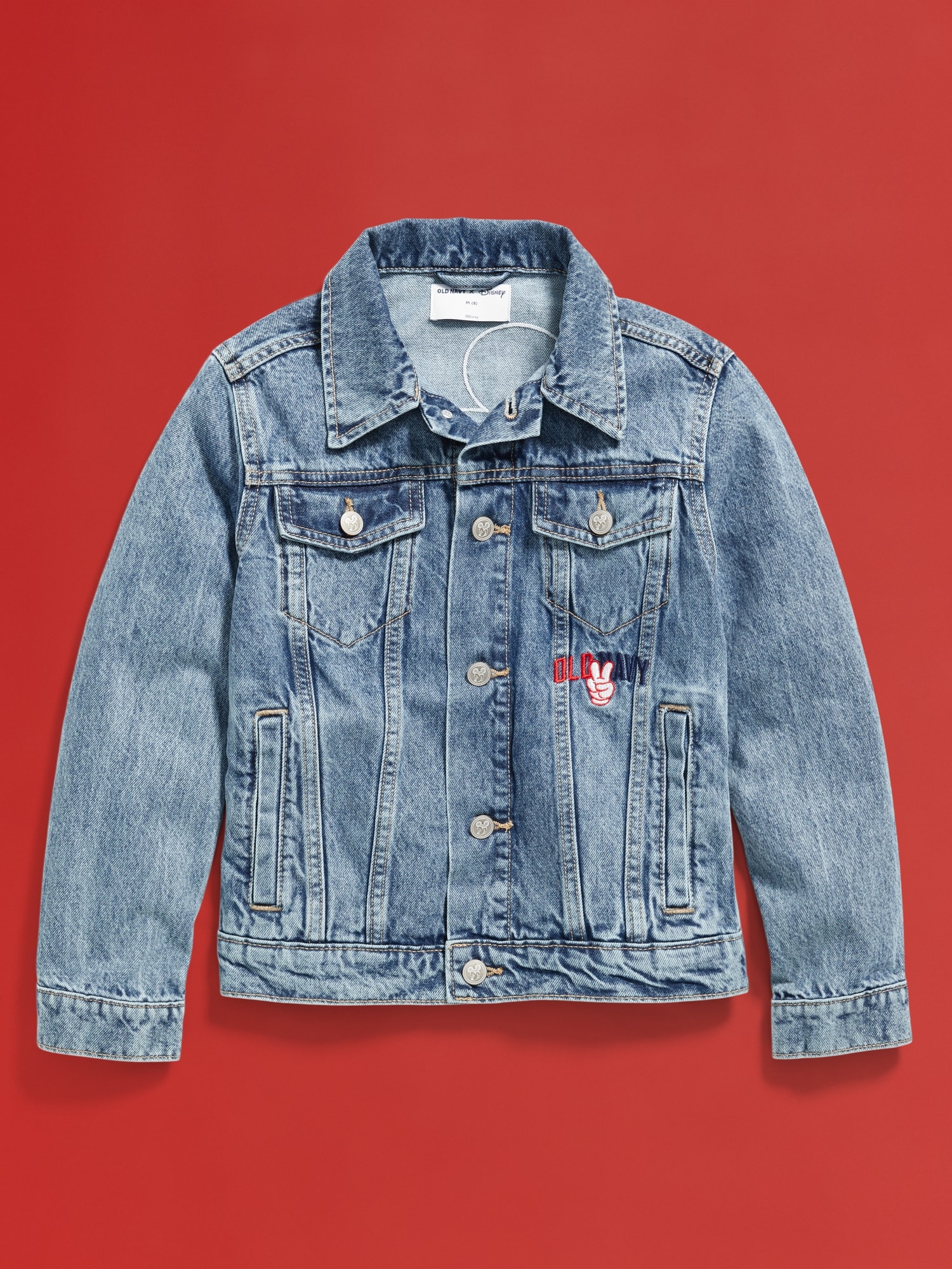 Old Navy x Disney© Mickey Mouse Gender-Neutral Logo-Graphic Jean Trucker Jacket for Kids: Two icons, together at last. Browse the collection for the whole fam.spread collar, long sleeves, buttoned cuffs, button-flap pockets at chest, full-length buttoned placket, vertical welt pockets, logo graphic at front, large-scale licensed graphic at back, Disney©, #761680