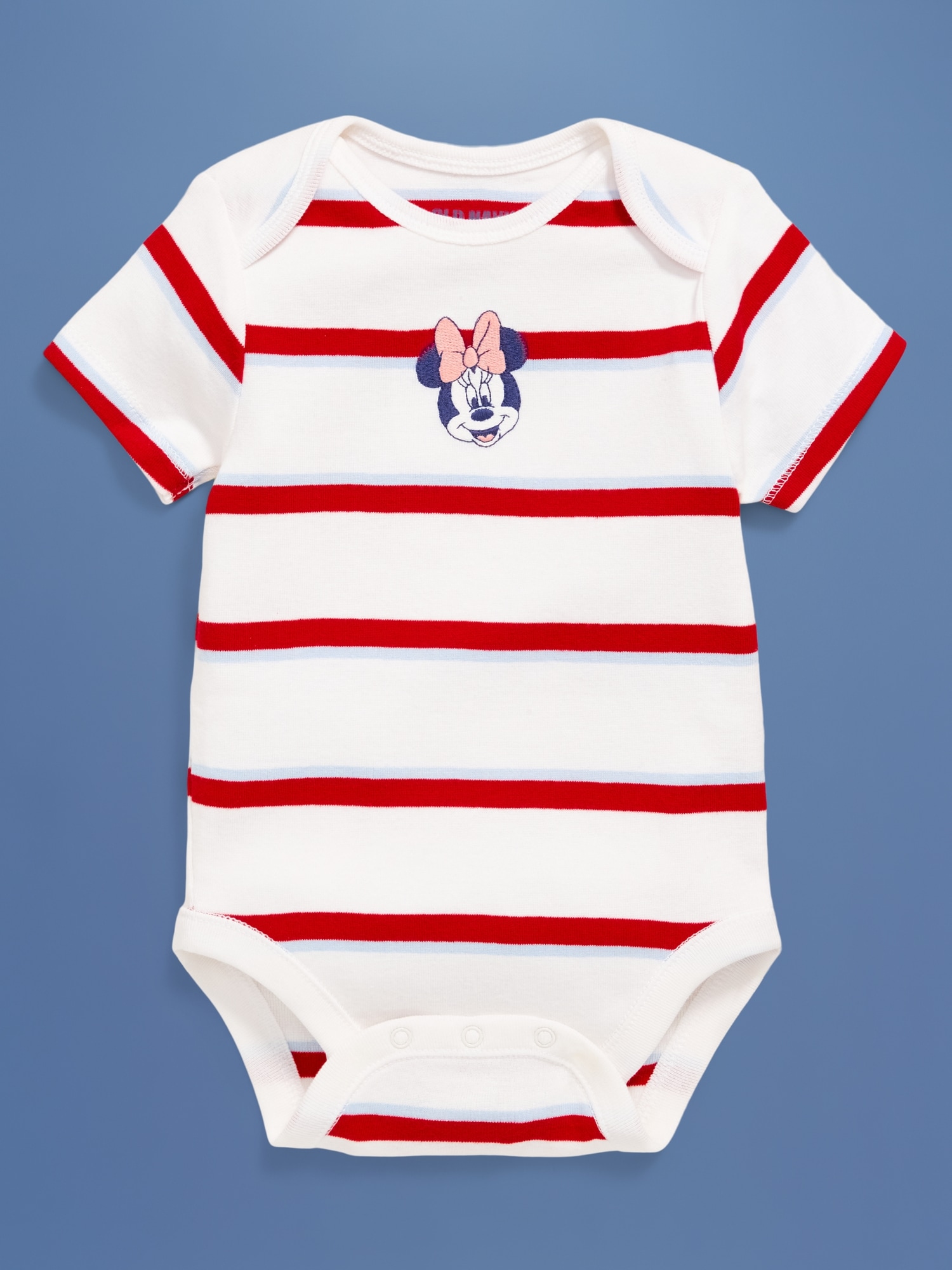 Old Navy x Disney© Minnie Mouse Short-Sleeve Bodysuit for Baby: Two icons, together at last. Family matching for the crew!rib-knit envelope neckline, short sleeves, snaps along inseam, licensed graphic, Disney©, #776474