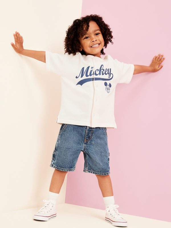 Old Navy x Disney© Oversized Mickey Mouse Baseball Shirt for Toddler Boys: crew neck, short sleeves, licensed character graphic, full-button front, Disney©, #763018