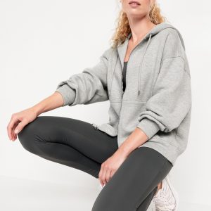 Oversized Bounce Fleece Zip Tunic Hoodie Sweatshirt: Featuring Bounce Fleece. A smooth, cooling finish that feels good and looks chic everywhere you go.drawstring hood, drop-shoulder sleeves, full-zip front, hand-warming pockets, breathable, #569981