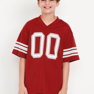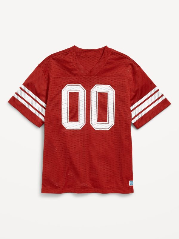 Oversized Boxy Mesh Graphic T-Shirt for Boys: v neck, short sleeves, drop shoulders, stripes at sleeves, graphic at front, #761889