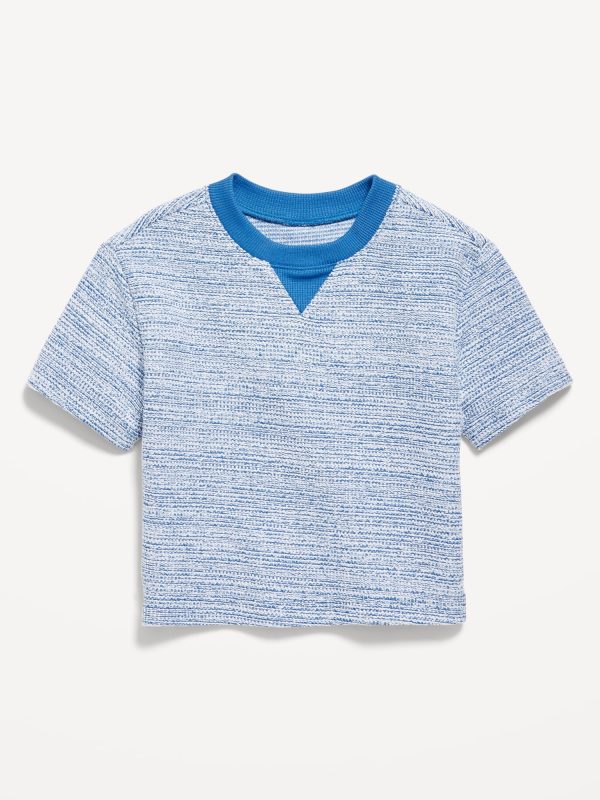 Oversized Boxy T-Shirt for Toddler Boys: ribbed crew neck, short sleeves, drop shoulders, all-over print or solid color, #750647