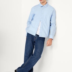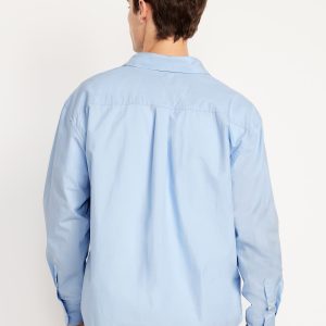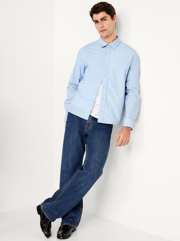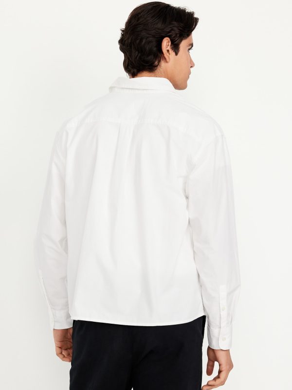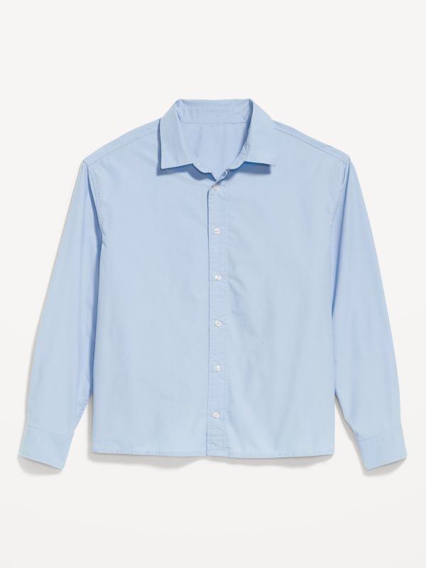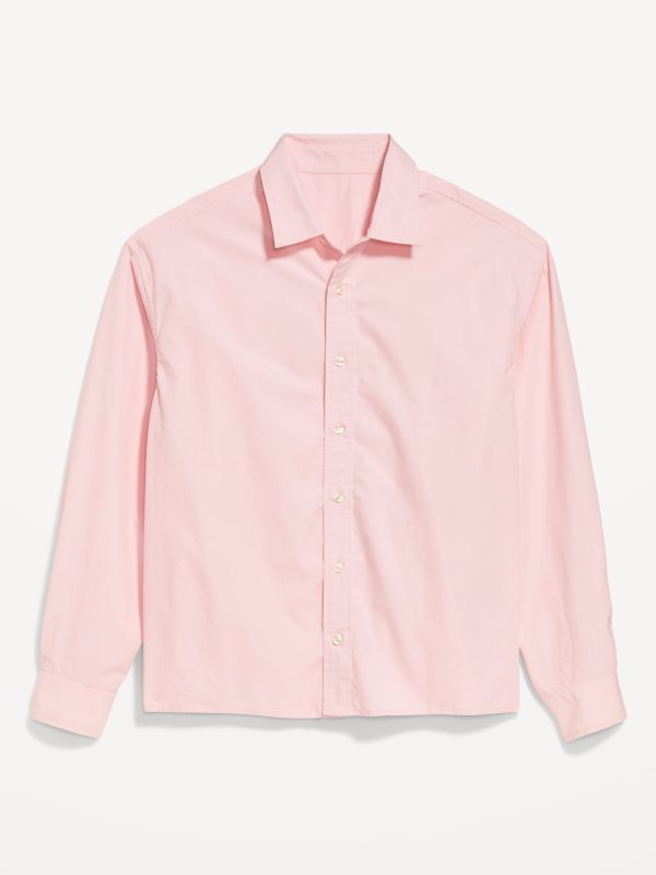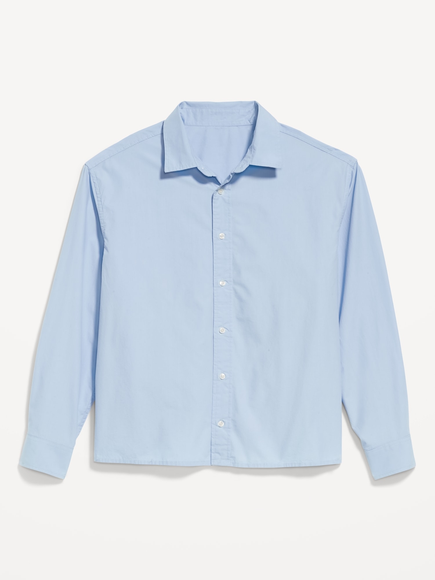 Oversized Cropped Poplin Shirt: spread collar, long sleeves, buttoned cuffs, full-button front, #781620