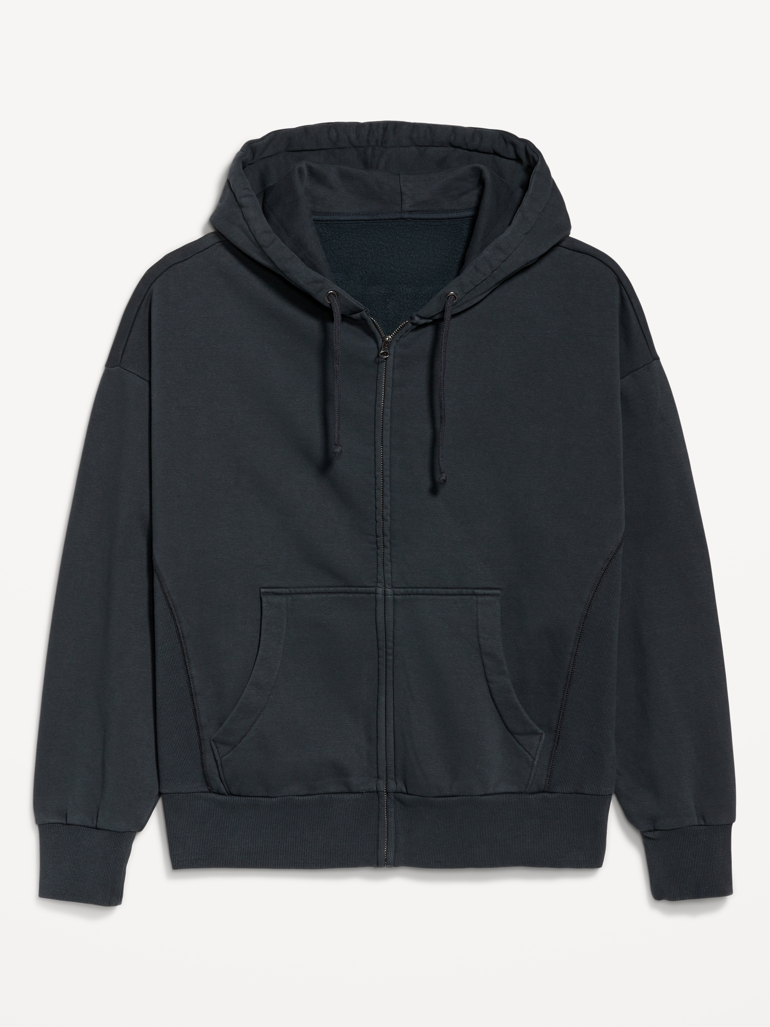 Oversized Heavyweight Zip Hoodie: drawstring hood, long sleeves, full-zip front, hand-warming pockets, rib-knit cuffs, hem and side panels, #787703
