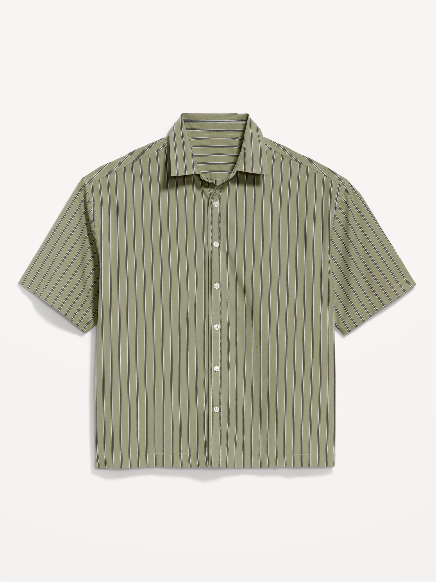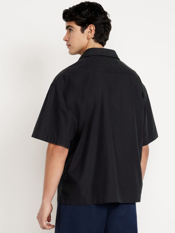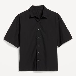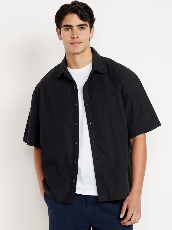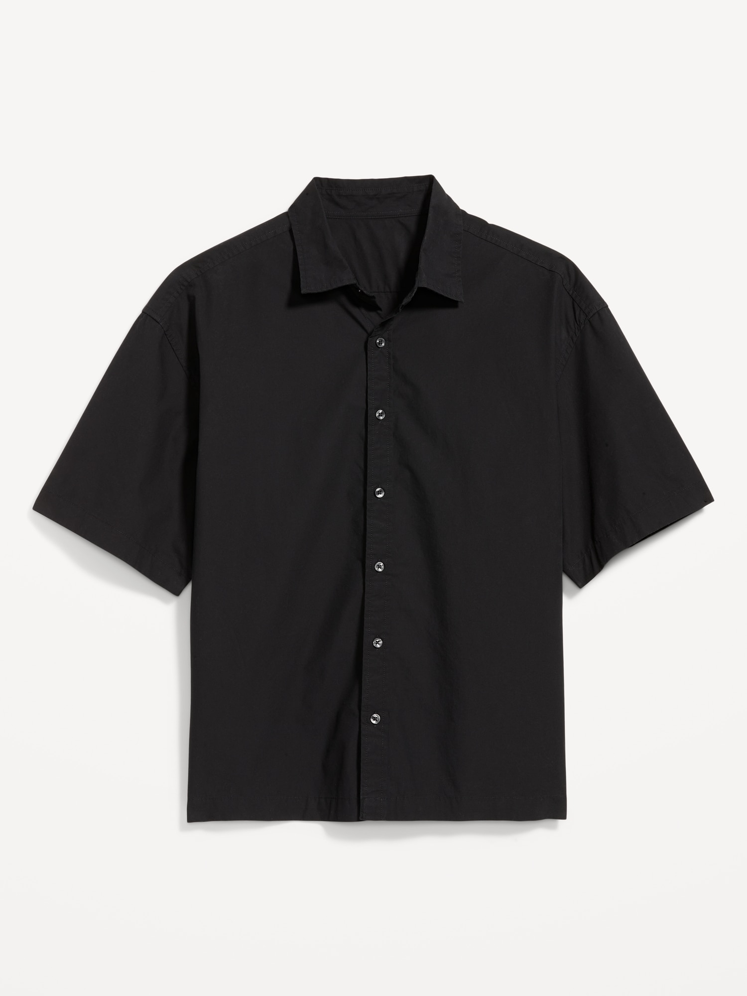 Oversized Poplin Shirt: spread collar, short sleeves, full-button front, vented sides, #781619