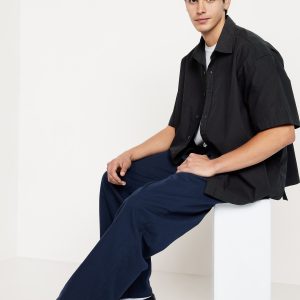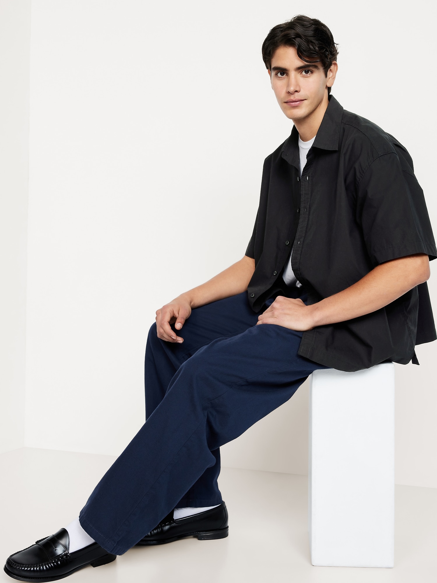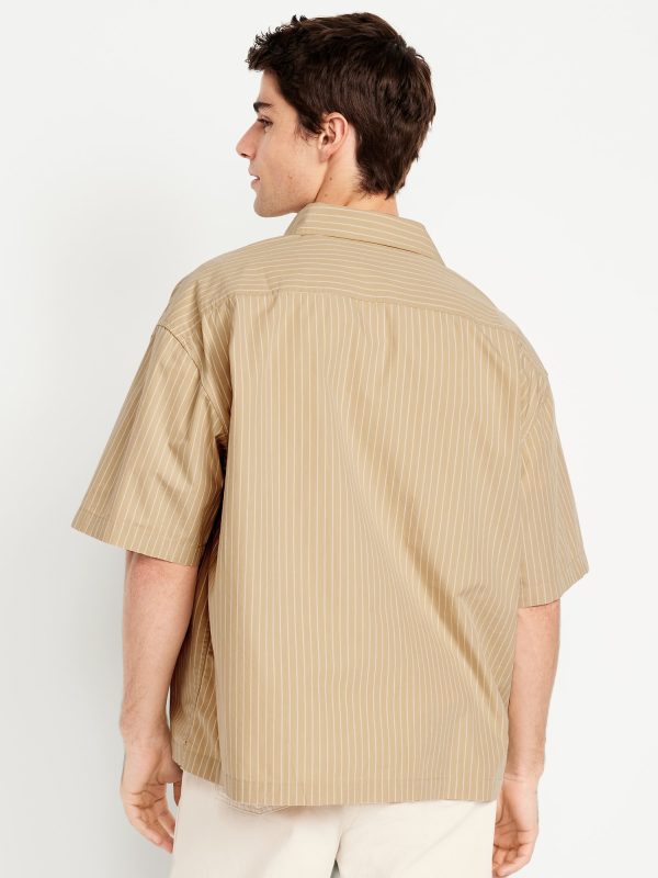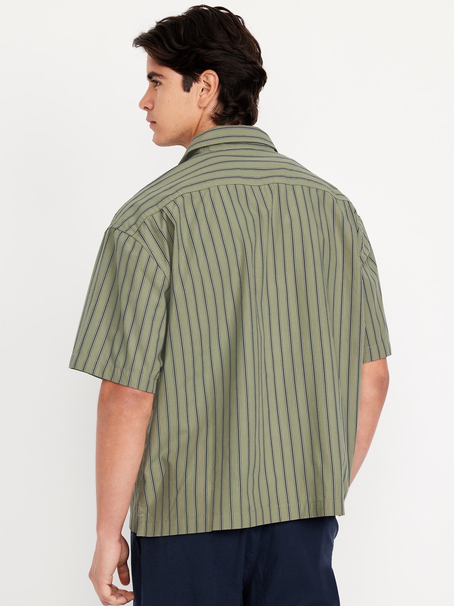 Oversized Poplin Shirt: spread collar, short sleeves, full-button front, vented sides, #781619