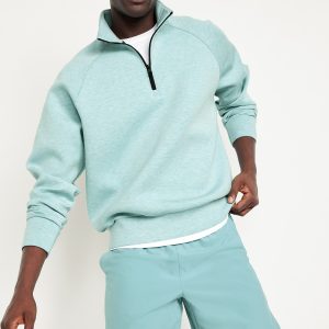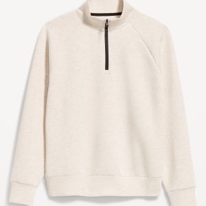 Oversized Quarter-Zip Bounce Fleece Pullover: Featuring Bounce Fleece. A smooth, cooling finish that feels good and looks chic everywhere you go.mock neck, quarter-zip front, long raglan sleeves, pullover style, #665321