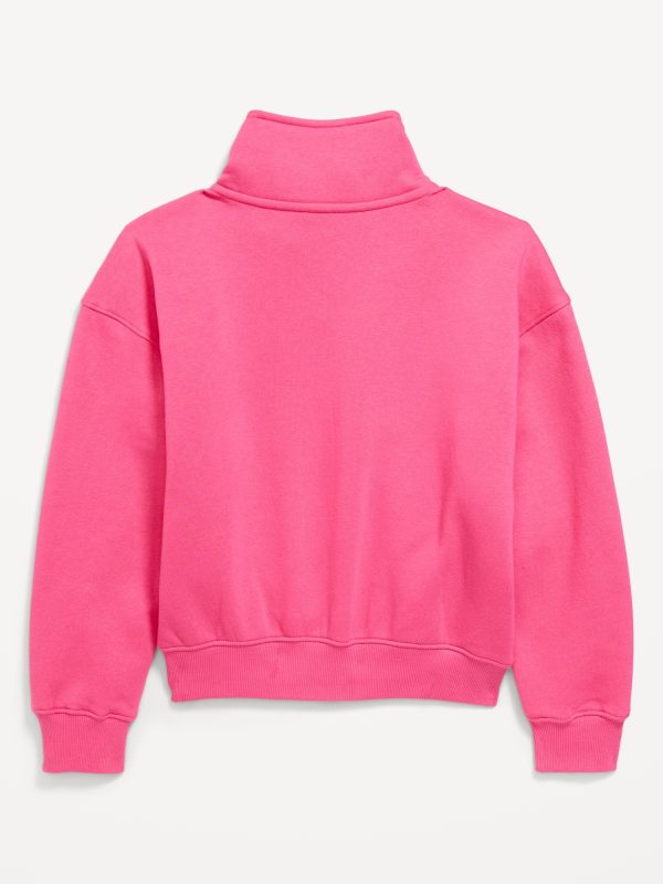 Oversized Quarter-Zip Sweatshirt for Girls: spread collar, long sleeves, drop shoulders, quarter zip front, banded hem, all-over pattern or graphic, #759538