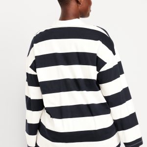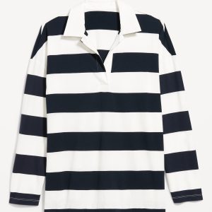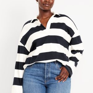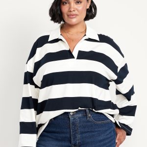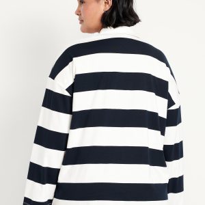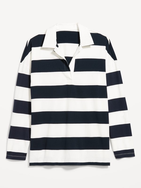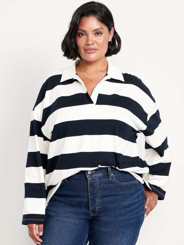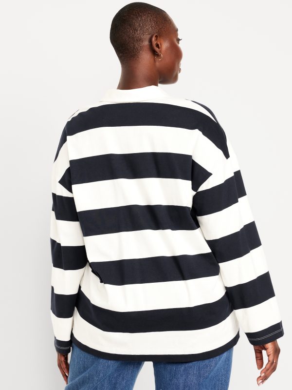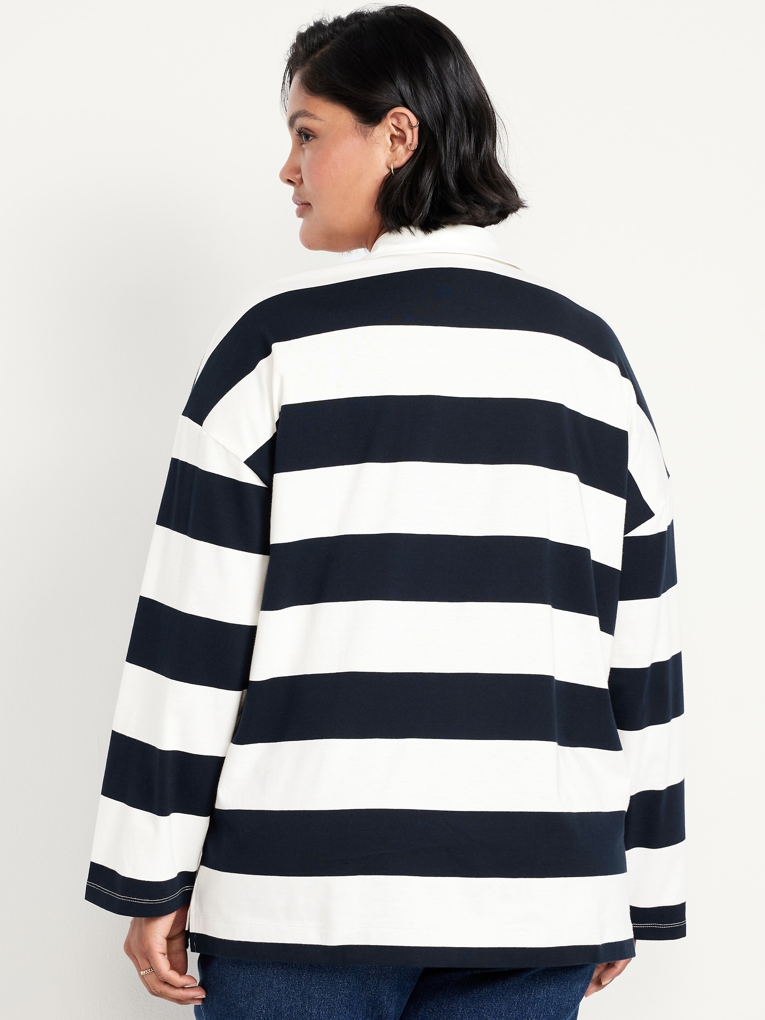 Oversized Rugby Polo: spread twill collar, long sleeves, wide contrasting stripes, #764298