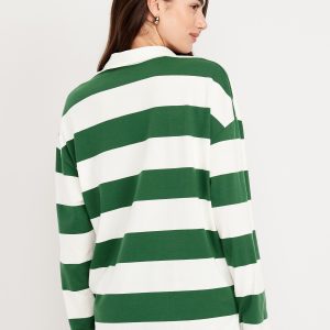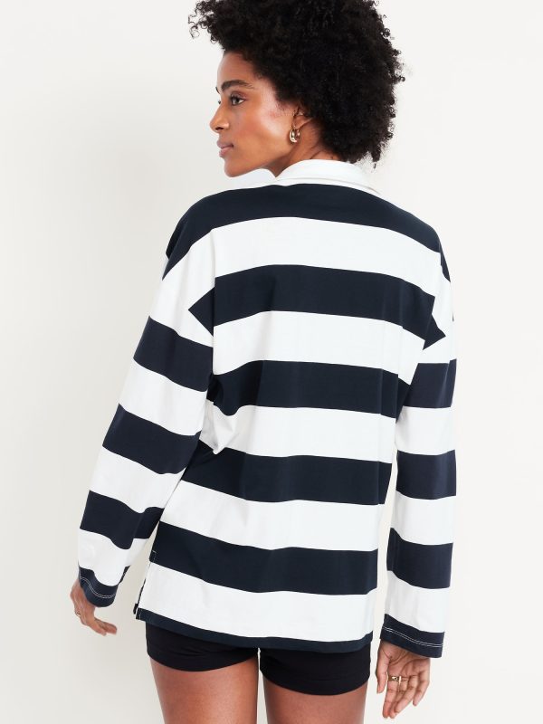 Oversized Rugby Polo: spread twill collar, long sleeves, wide contrasting stripes, #764298