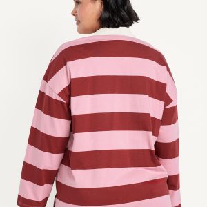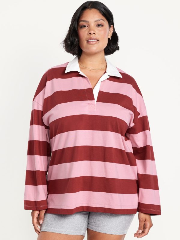 Oversized Rugby Polo: spread twill collar, long sleeves, wide contrasting stripes, #764298