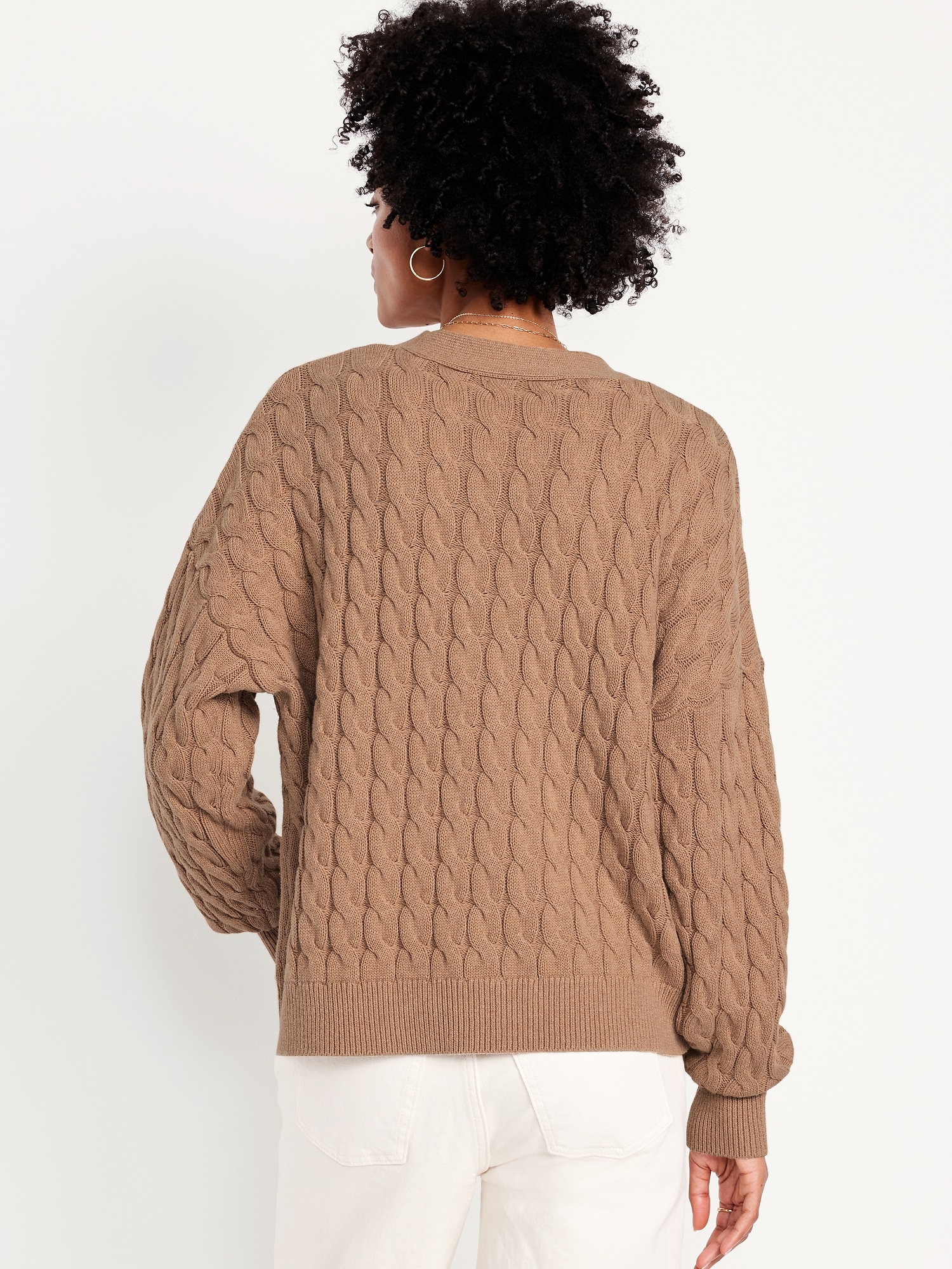 Oversized Slouchy Cable-Knit Cardigan Sweater