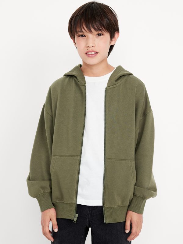 Oversized Zip Hoodie for Boys: built-in hood, long sleeves, drop shoulders, full length zipper, hand-warming scoop pockets, banded hem, #761769
