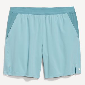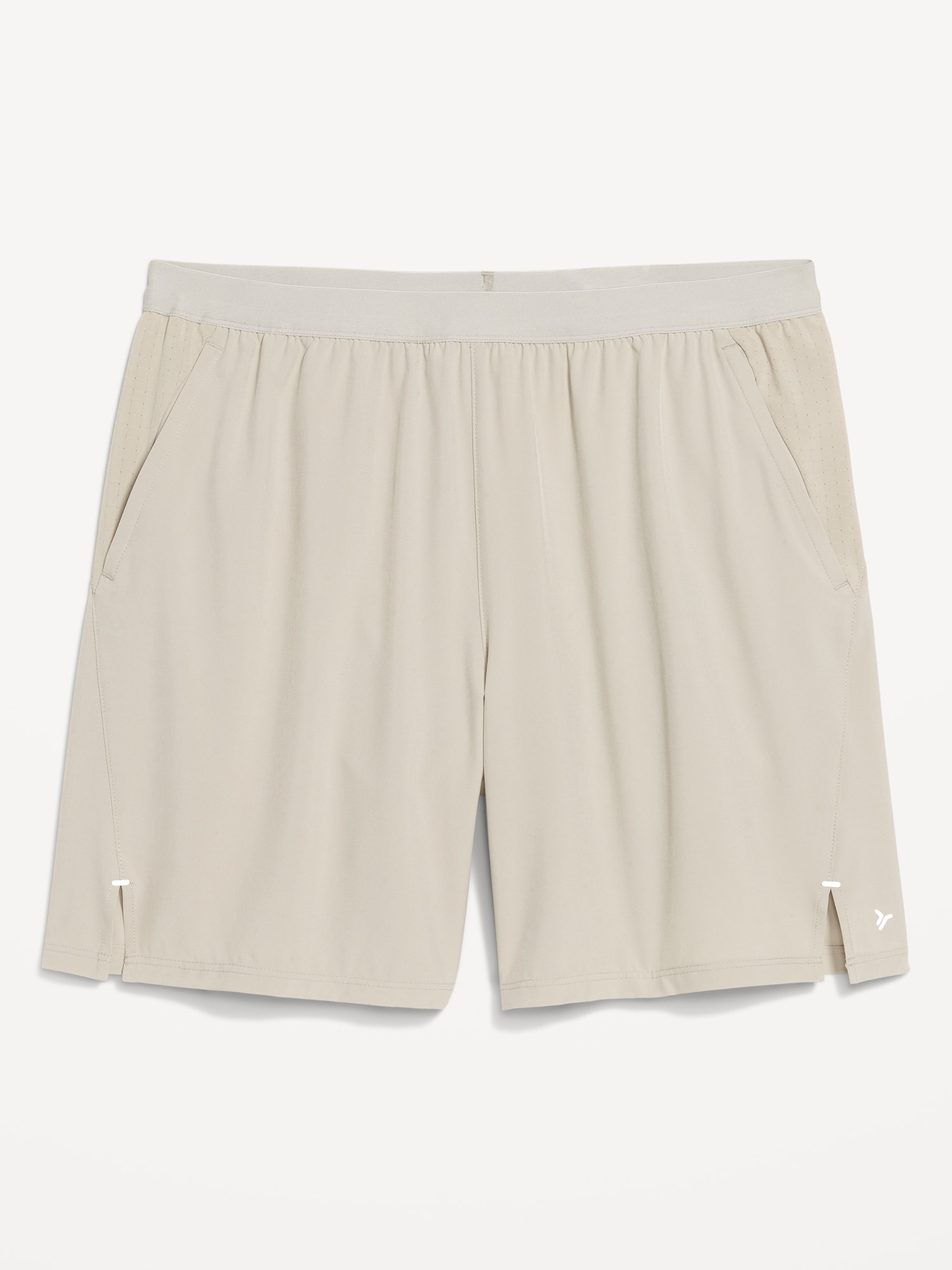 Performance Vent Run Shorts — 7-inch inseam: elastic-drawstring waistband, hidden back pocket at waist, diagonal hip pockets, vented sides, built-in briefs, breathable, quick dry, four-way stretch, #693436