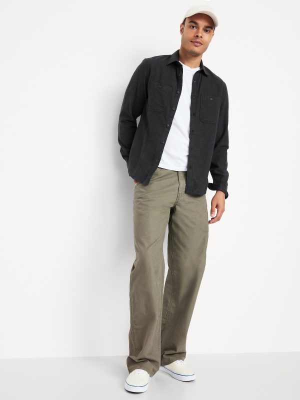 Plaid Flannel Pocket Shirt: spread collar, long sleeves with buttoned cuffs, button-patch chest pockets, full-button front, rounded hem, #801296