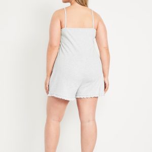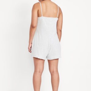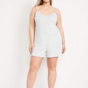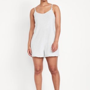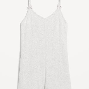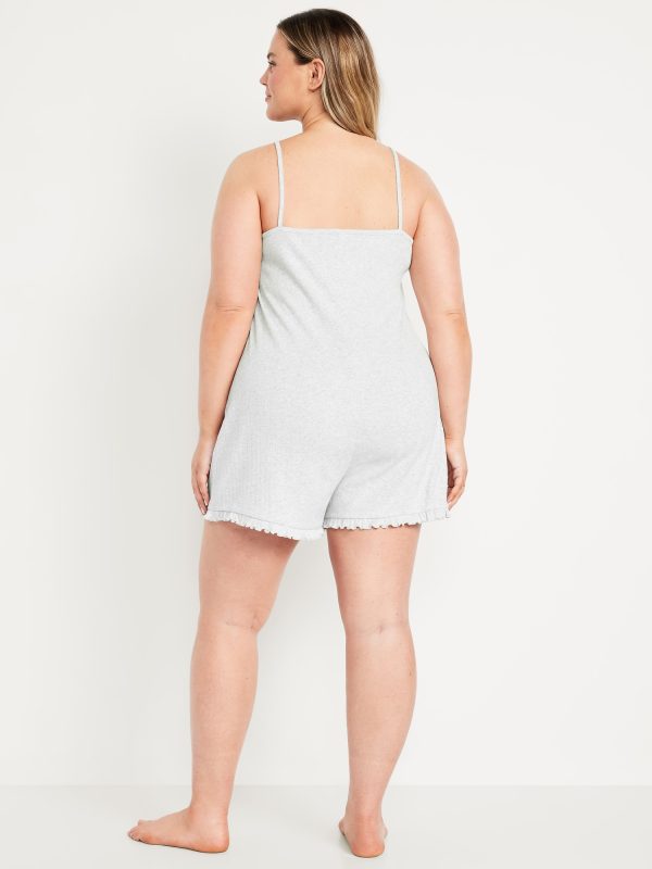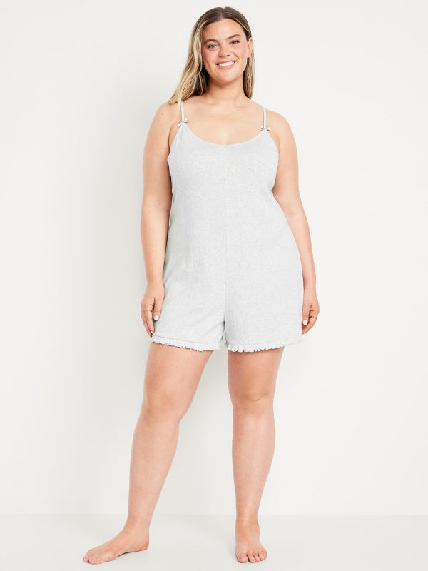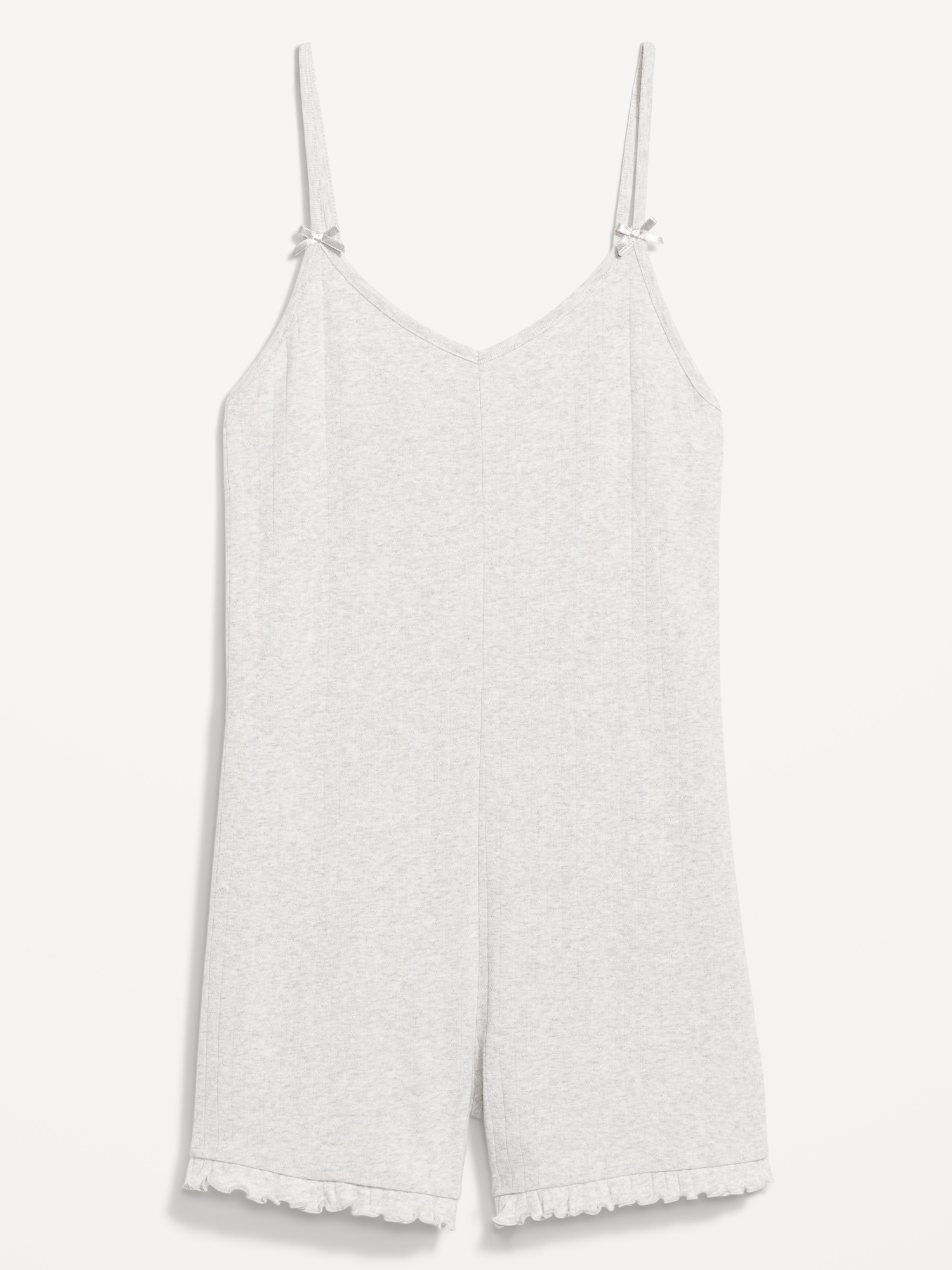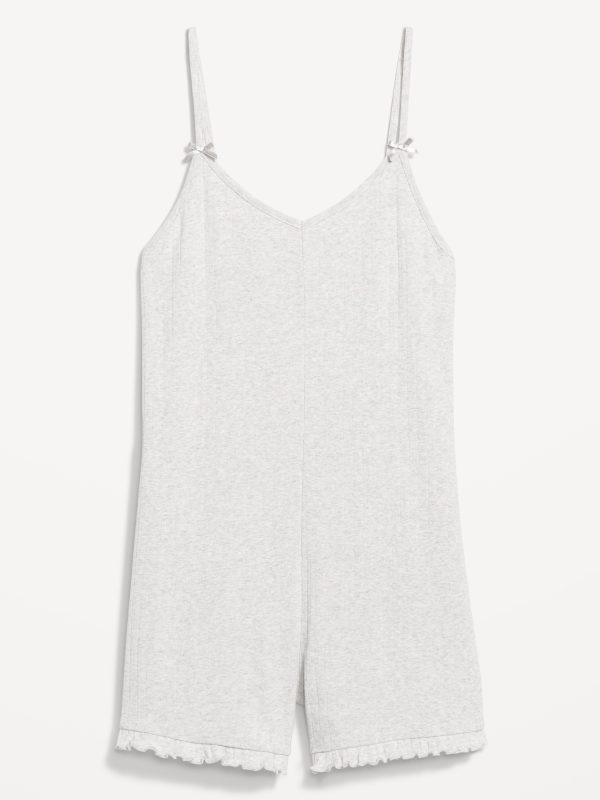 Pointelle Pajama Romper: spaghetti straps with bow accent, v-neck, ruffled hem, #808349