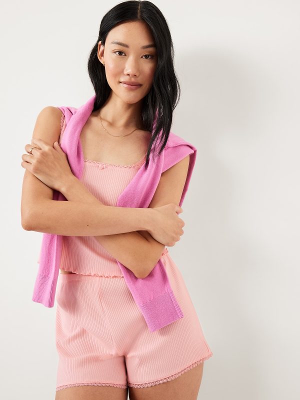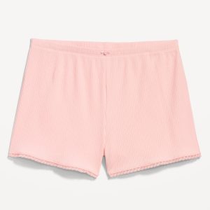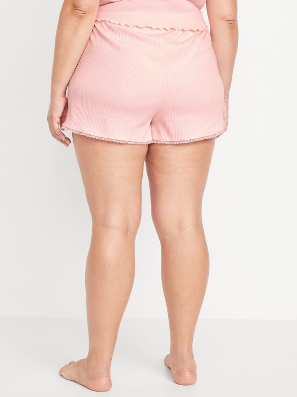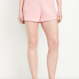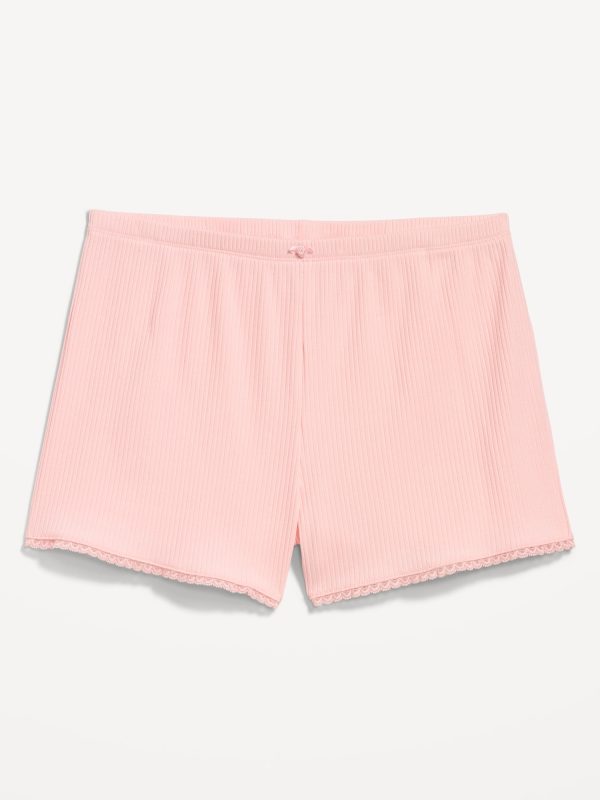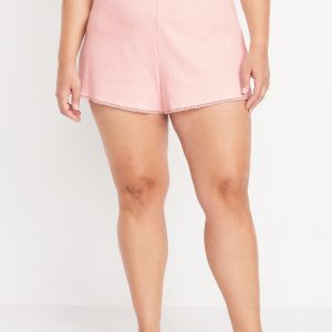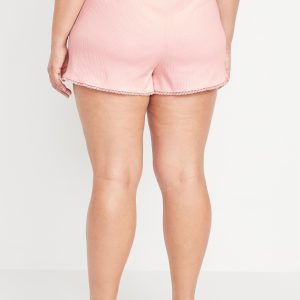 Pointelle Pajama Shorts: elasticized waistband, lace-trim hem, #707458