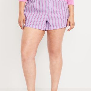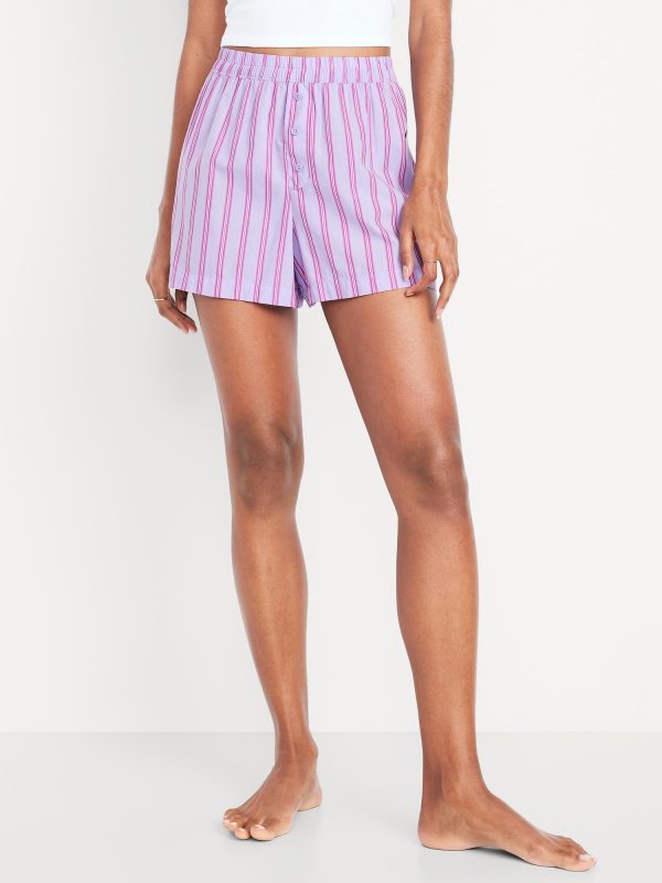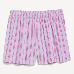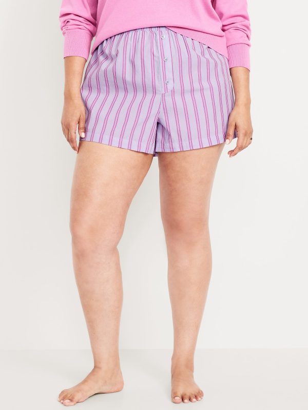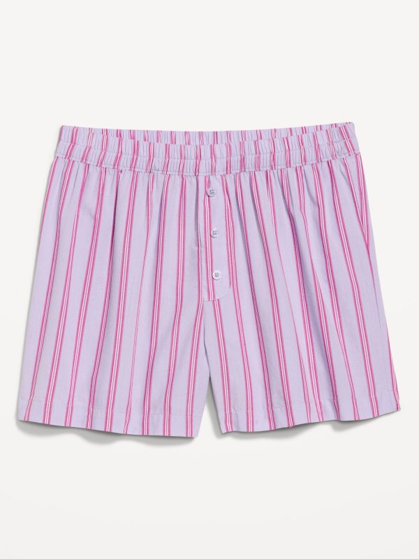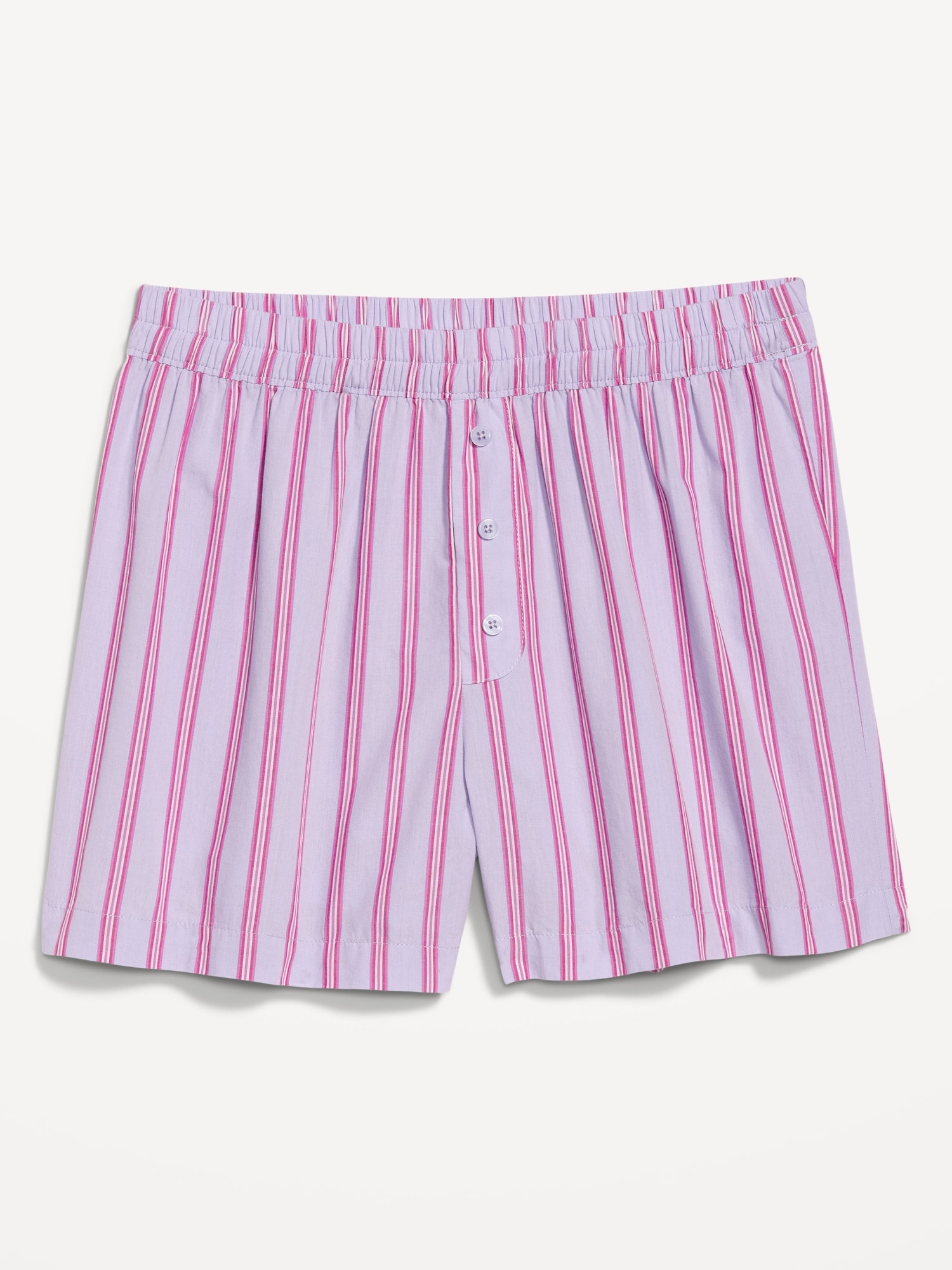 Poplin Boxer Pajama Shorts: elastic waistband, decorative button fly, plaid print, #798497