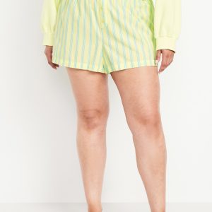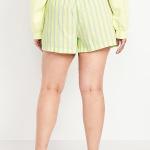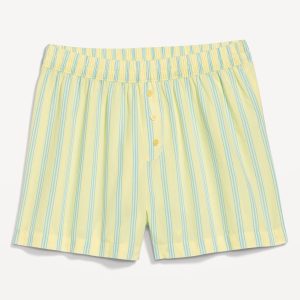 Poplin Boxer Pajama Shorts: elastic waistband, decorative button fly, plaid print, #798497